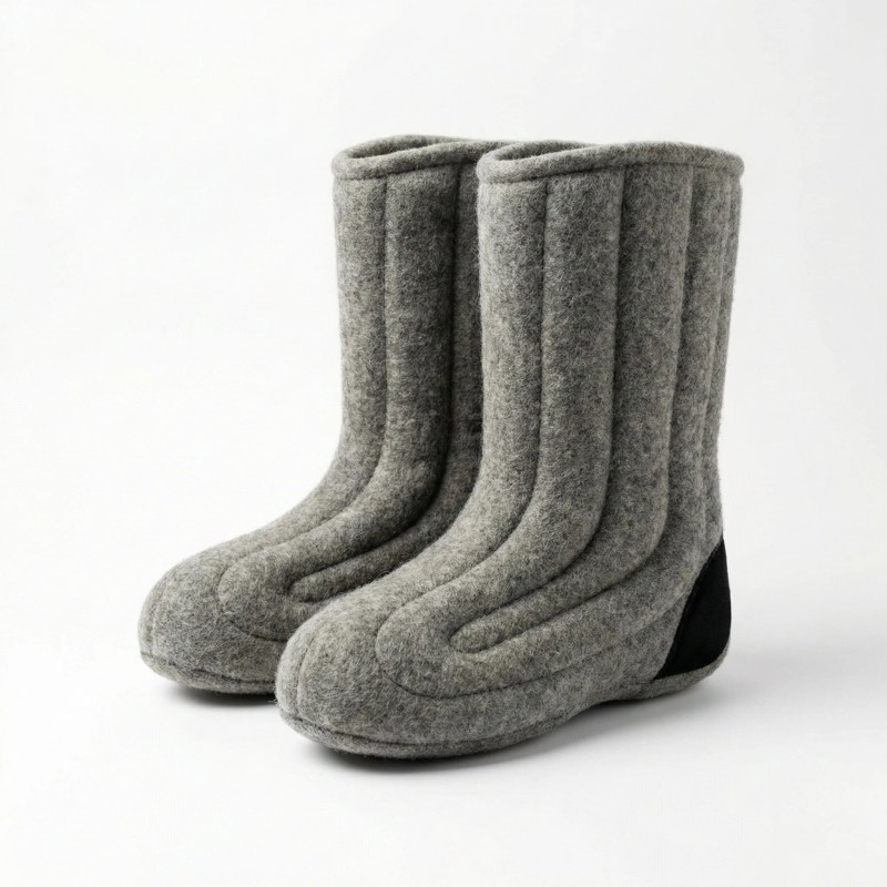 Шинельне сукно — це той самий матеріал, з якого шили військові шинелі. Він створений витримувати екстремальні умови: не пропускає вологу, зберігає тепло при -30°C і служить роками без втрати властивостей. Валянки прошиті посиленим швом, підошва не ковзає, а натуральна вовна всередині створює ідеальний мікроклімат для ніг.