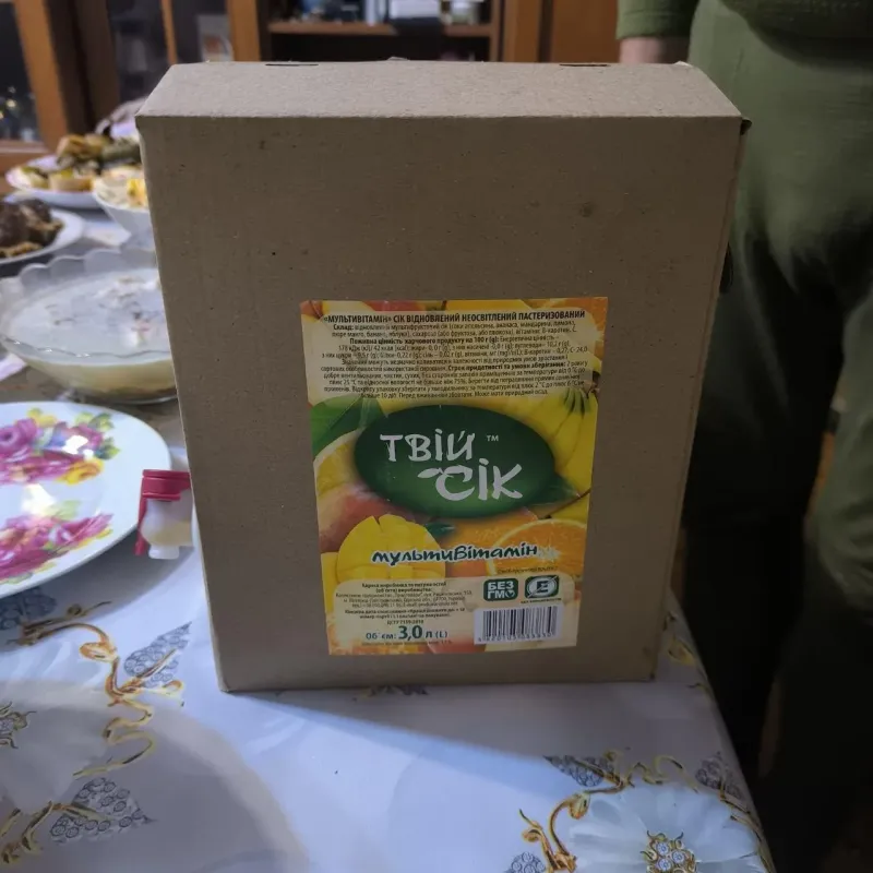 Сік "Твій Сік" Мультивітамін 3 л — тропічна насолода у великому форматі! Натуральний відновлений сік "Мультивітамін" подарує заряд бадьорості та вітамінів. Завдяки зручному пакуванню Bag-in-Box ("пакет у коробці"), сік надійно захищений від світла та повітря, а вбудований краник дозволяє легко наливати напій, не піднімаючи важку коробку. Переваги соку "Твій Сік" 3 л: Багатий смак: У складі — мікс соків апельсина, ананаса, мандарина, лимона, а також пюре манго, банана та яблука. Зручність (Bag-in-Box): Коробка оснащена спеціальним краником-дозатором. Це ідеальне рішення для пікніків, дитячих свят, дачі або домашнього використання — діти можуть наливати сік самостійно!. Свіжість: Герметичний пакет всередині стискається в міру використання соку, не пропускаючи повітря всередину. Це дозволяє продукту залишатися свіжим довше після відкриття. Якість: Сік пастеризований, без консервантів та ГМО. Виготовлено в Україні (Одеська обл.). Характеристики: Тип: Сік відновлений неосвітлений пастеризований. Смак: Мультивітамін. Об'єм: 3,0 л (3000 мл). Упаковка: Картонна коробка з пакетом та краником (Bag-in-Box). Енергетична цінність: 42 ккал / 100 г. 🍹 Замовляйте велику упаковку соку "Твій Сік" — вистачить на всю компанію!
