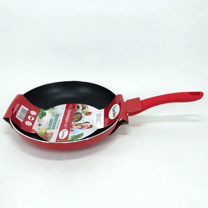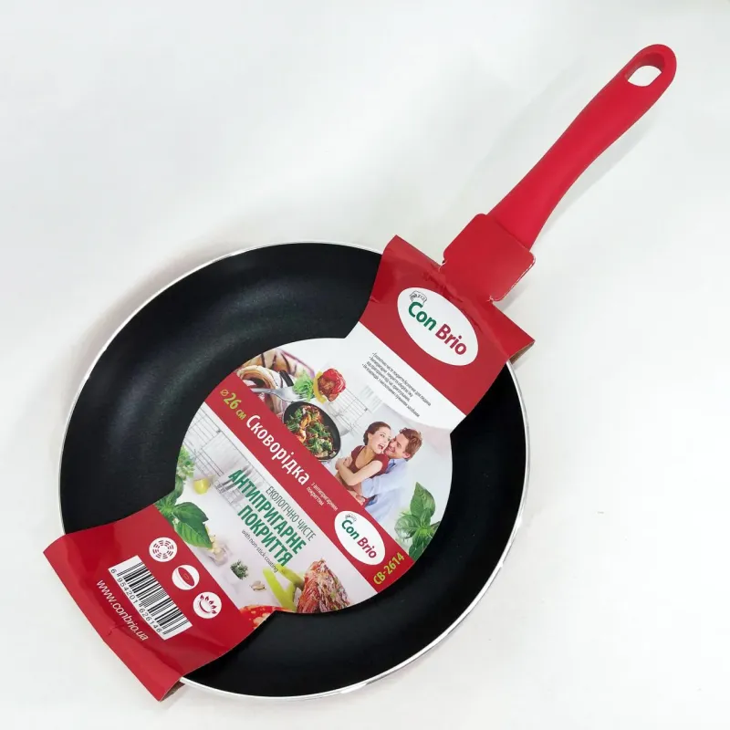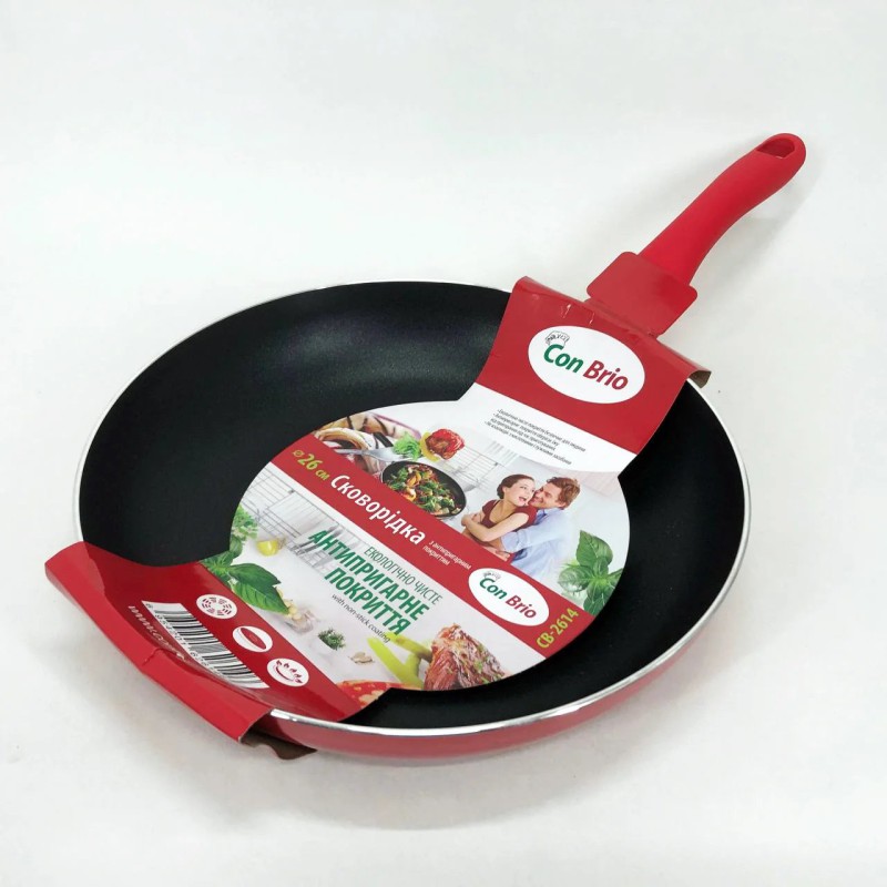 Ідеальна сковорода для щоденного використання у домашній кухні – Con Brio 26 см 2614-СВ червоного кольору поєднує у собі комфорт, стиль та функціональність. Вона стане незамінним помічником при приготуванні улюблених страв, забезпечуючи рівномірний розподіл тепла та збереження смакових якостей продуктів без прилипання і пригоряння.