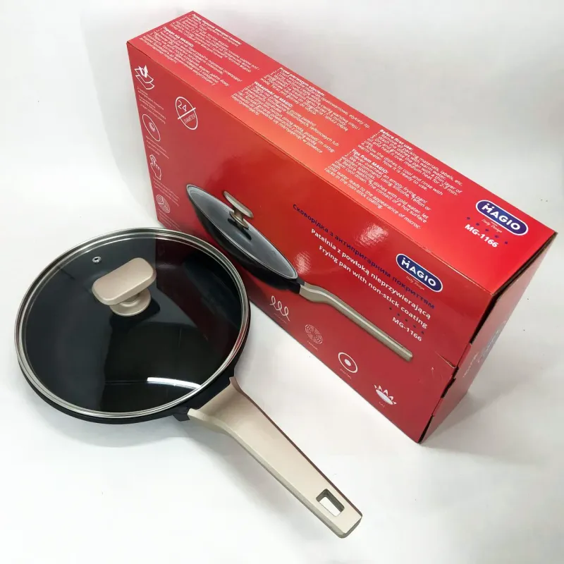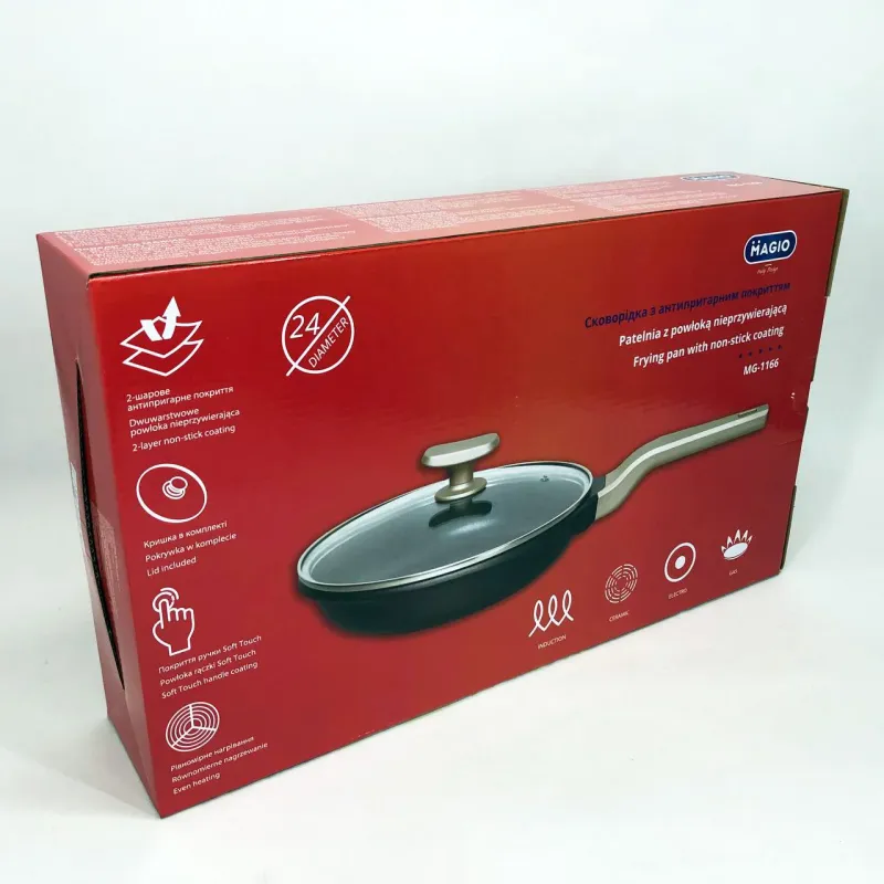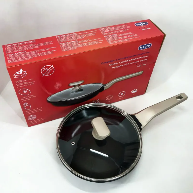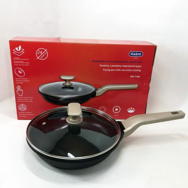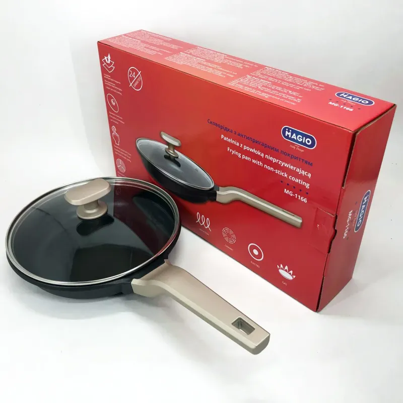 Сковорода Magio MG-1166 с крышкой антипригарная 24 см, сковорода для жарки, качественная сковорода