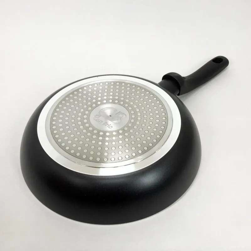 - Рівномірне розподілення тепла по всій поверхні сковороди, що виключає пригорання та нерівномірне приготування страв.