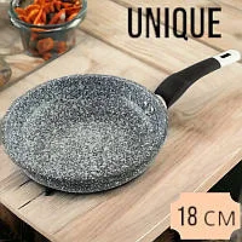 Торгова марка Unique – відома своїми традиціями створення якісного та не дорогого посуду. Сковорода UNIQUE Granite coating виготовлена з литого алюмінію з багатошаровим гранітним антипригарним покриттям. Перевага цього покриття – це багатошарове покриття з кількох шарів кам’яної крихти на мінеральній основі. Таке покриття визнано одним із найбезпечніших для здоров’я людей та навколишнього середовища. Сковорода UNIQUE Granite coating з антипригарними властивостями, вона зносостійка та довговічна. Нова система пористого антипригарного покриття дозволяє просмажувати продукти до хрусткої скоринки. Стильна і зручна довговічна сковорода UNIQUE з гранітним покриттям знайде своє місце на будь-якій кухні. Перед першим використанням вимийте посуд миючим засобом, промийте, просушіть. Забороняється використовувати металеві губки, а також засоби, що містять абразивні добавки та хлор. Для миття посуду можна використовувати посудомийну машину та ручне миття. Різкий перепад температур може призвести до псування покриття, тому не ставте на гарячу конфорку посуд із холодильника. Готувати їжу слід за невеликого або середнього нагрівання. Не залишайте на гарячій конфорці посуд на тривалий час. Посуд з антипригарним покриттям прослужить довше, якщо продукти помішувати в ній дерев’яними, пластиковими або силіконовими інструментами UNIQUE. Якщо ви зберігаєте посуд у стосі, використовуйте між предметами спеціальні вкладки для зберігання посуду, щоб захистити поверхню від подряпин. Діаметр посуду повинен збігатися з розміром конфорки, при використанні на газовій плиті полум’я не повинне стосуватися стінок посуду. У цьому випадку ручки менше нагріватимуться. У будь-якому випадку, щоб уникнути опіків, слід уникати різкої зміни температури при використанні виробу. Не можна мити посуд поки вона гаряча. Остудіть її до кімнатної температури. Будь ласка, дотримуйтесь рекомендацій щодо догляду, і посуд прослужить вам дуже довго.