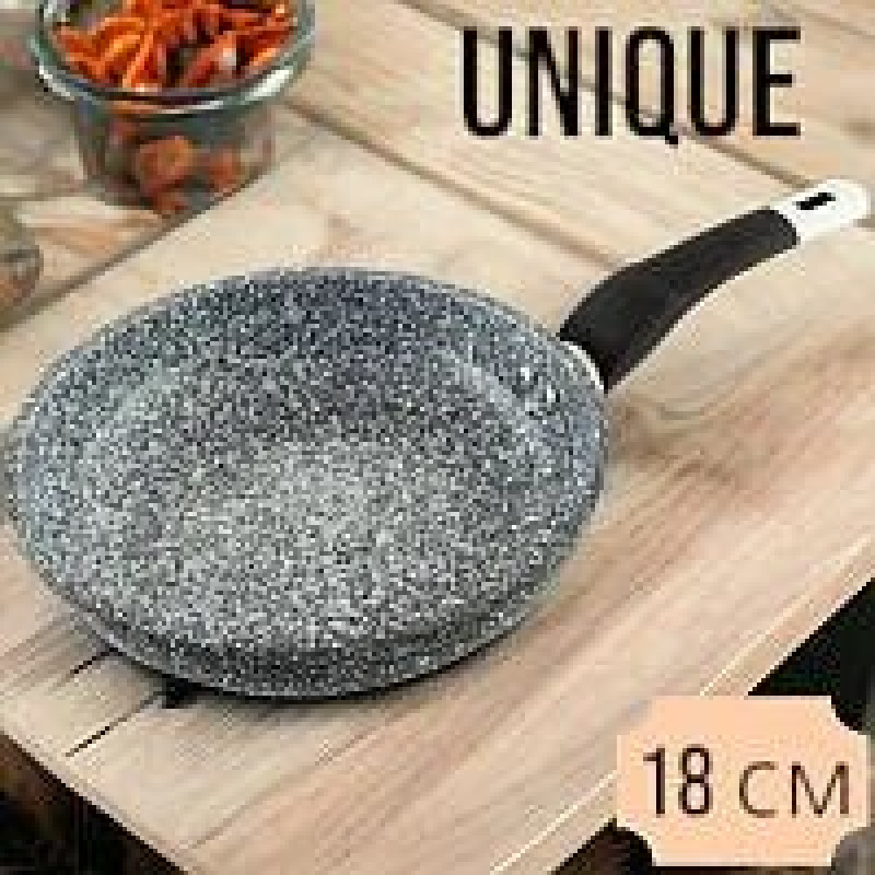 Торгова марка Unique – відома своїми традиціями створення якісного та не дорогого посуду. Сковорода UNIQUE Granite coating виготовлена з литого алюмінію з багатошаровим гранітним антипригарним покриттям. Перевага цього покриття – це багатошарове покриття з кількох шарів кам’яної крихти на мінеральній основі. Таке покриття визнано одним із найбезпечніших для здоров’я людей та навколишнього середовища. Сковорода UNIQUE Granite coating з антипригарними властивостями, вона зносостійка та довговічна. Нова система пористого антипригарного покриття дозволяє просмажувати продукти до хрусткої скоринки. Стильна і зручна довговічна сковорода UNIQUE з гранітним покриттям знайде своє місце на будь-якій кухні. Перед першим використанням вимийте посуд миючим засобом, промийте, просушіть. Забороняється використовувати металеві губки, а також засоби, що містять абразивні добавки та хлор. Для миття посуду можна використовувати посудомийну машину та ручне миття. Різкий перепад температур може призвести до псування покриття, тому не ставте на гарячу конфорку посуд із холодильника. Готувати їжу слід за невеликого або середнього нагрівання. Не залишайте на гарячій конфорці посуд на тривалий час. Посуд з антипригарним покриттям прослужить довше, якщо продукти помішувати в ній дерев’яними, пластиковими або силіконовими інструментами UNIQUE. Якщо ви зберігаєте посуд у стосі, використовуйте між предметами спеціальні вкладки для зберігання посуду, щоб захистити поверхню від подряпин. Діаметр посуду повинен збігатися з розміром конфорки, при використанні на газовій плиті полум’я не повинне стосуватися стінок посуду. У цьому випадку ручки менше нагріватимуться. У будь-якому випадку, щоб уникнути опіків, слід уникати різкої зміни температури при використанні виробу. Не можна мити посуд поки вона гаряча. Остудіть її до кімнатної температури. Будь ласка, дотримуйтесь рекомендацій щодо догляду, і посуд прослужить вам дуже довго.