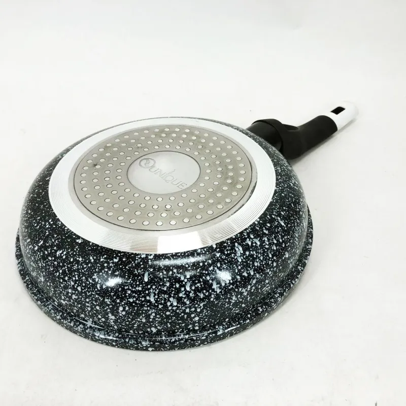 Сковорода UNIQUE Granite coating изготовлена из литого алюминия с многослойным антипригарным гранитным покрытием. Преимущество данного покрытия — это многослойное покрытие из нескольких слоев каменной крошки на минеральной основе. Такое покрытие признано одним из самых безопасных для здоровья людей и окружающей среды. Сковорода UNIQUE Granite coating с антипригарными свойствами, она износостойка и долговечна. Новая система пористого антипригарного покрытия позволяет прожаривать продукты до хрустящей корочки. Стильная и удобная а так же долговечная сковорода UNIQUE с гранитным покрытием найдет свое место на любой кухне.