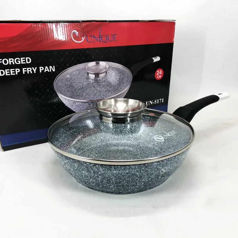 Сковорода UNIQUE UN-5104 24 см, без крышки, многослойным антипригарным гранитным покрытием