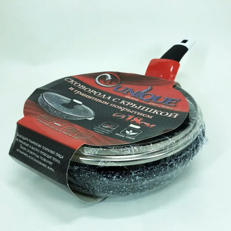 Сковорода UNIQUE UN-5112 18 см с крышкой и гранитным антипригарным покрытием
