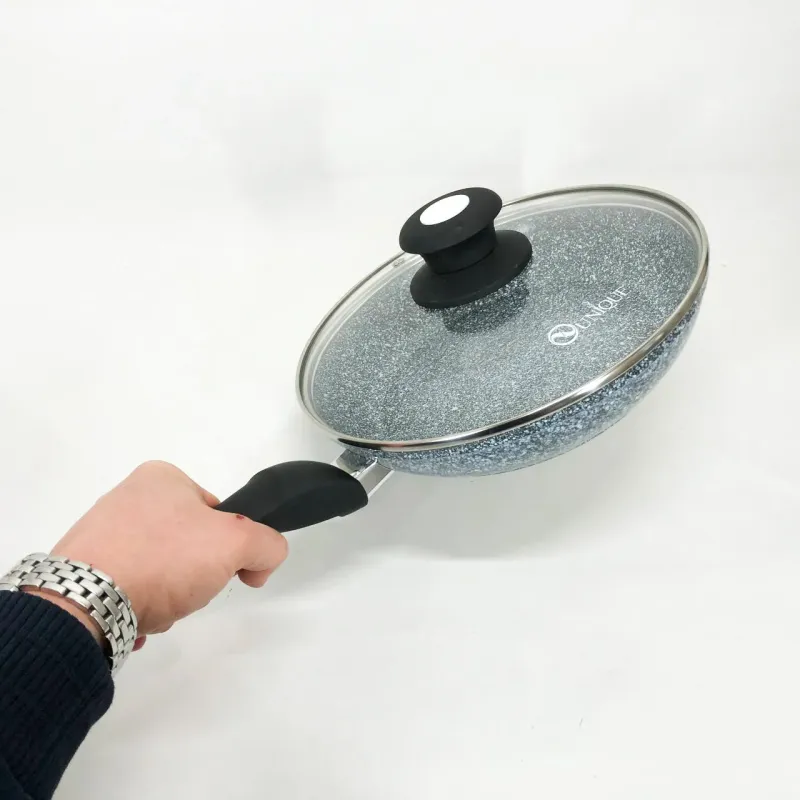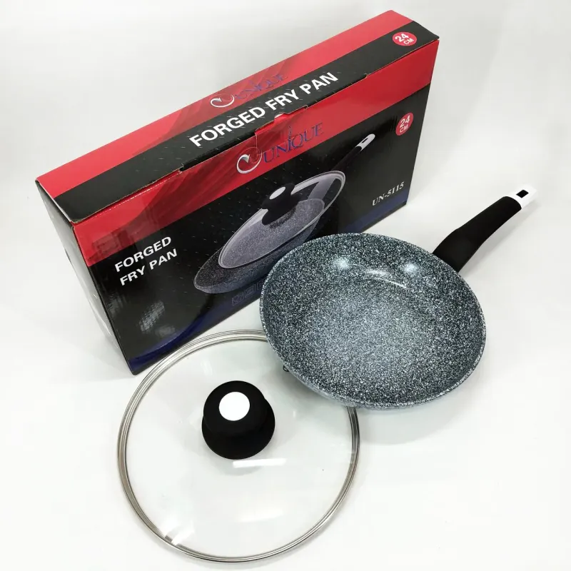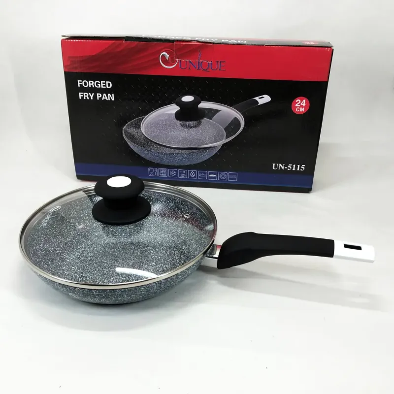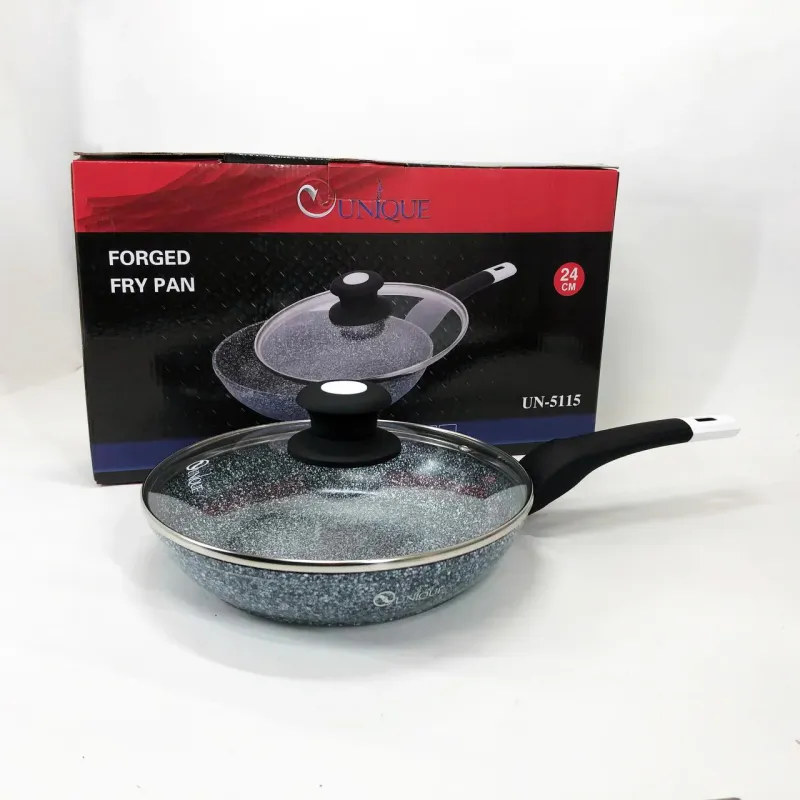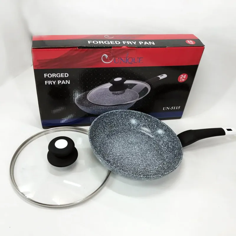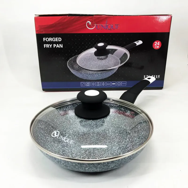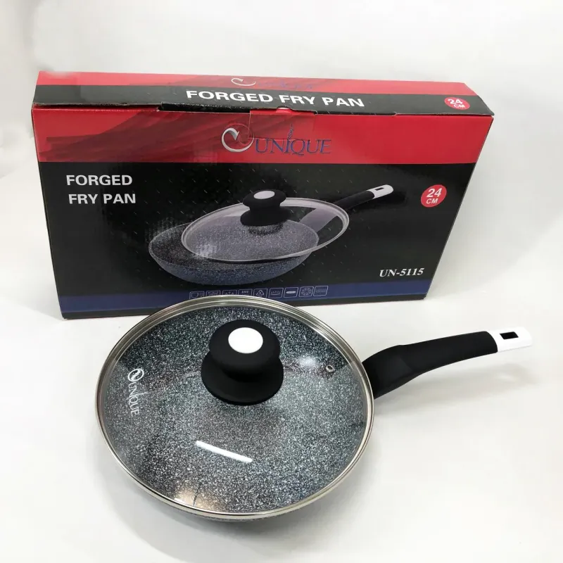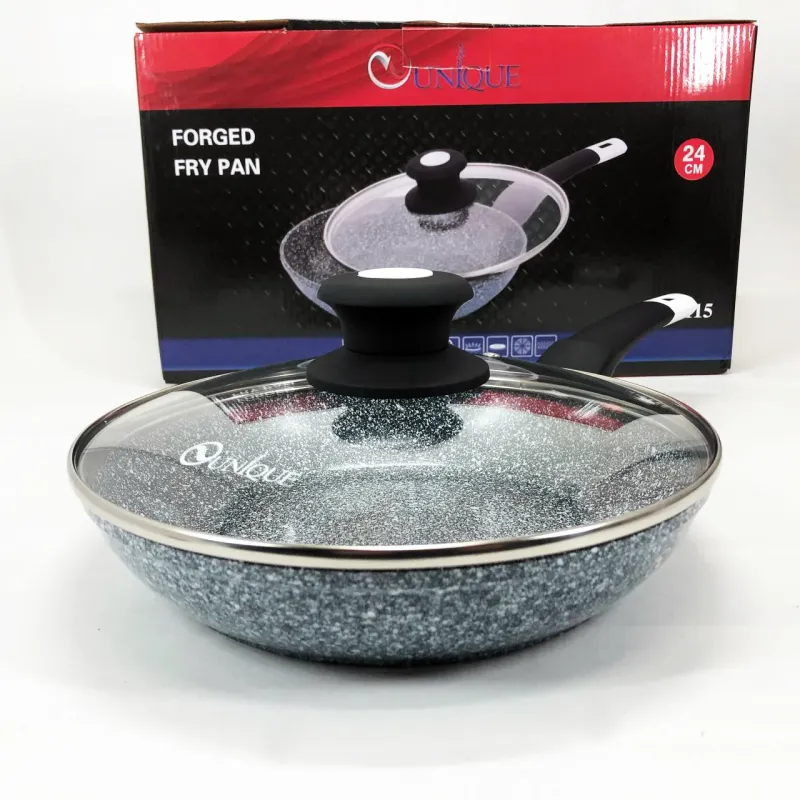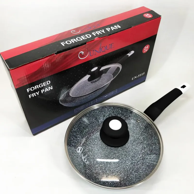 Сковорода UNIQUE UN-5115-24 см с крышкой/гранит светлый