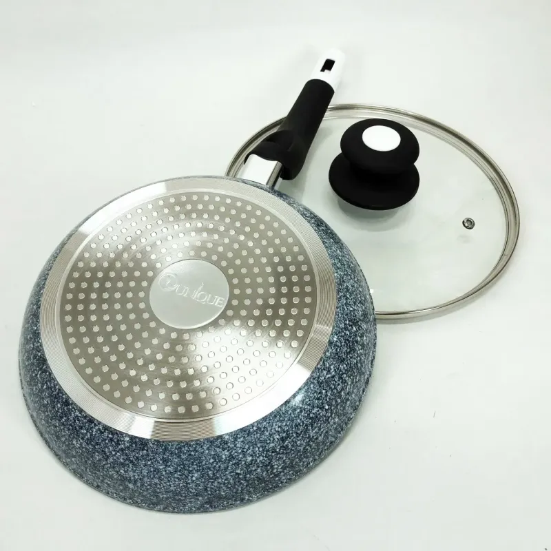 Сковорода UNIQUE UN-5115 имеет высококачественное гранитное антипригарное покрытие. Преимущество данного покрытия — это многослойное покрытие из нескольких слоев каменной крошки на минеральной основе. Частицы гранита значительно усиливают защиту антипригарного покрытия, благодаря чему сковорода износостойка и долговечна. Новая система пористого антипригарного покрытия позволяет прожаривать продукты до хрустящей корочки.