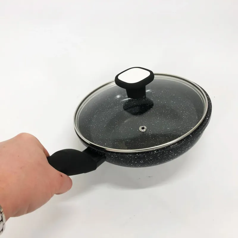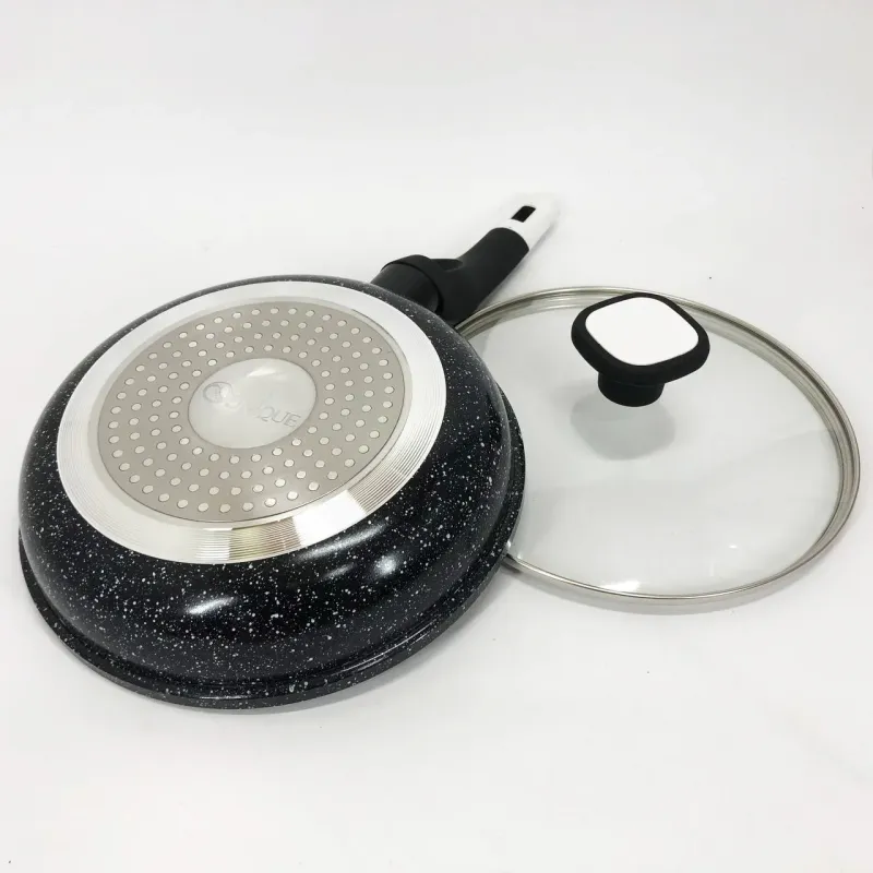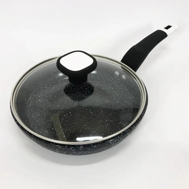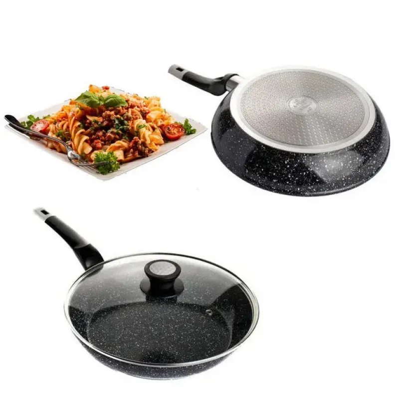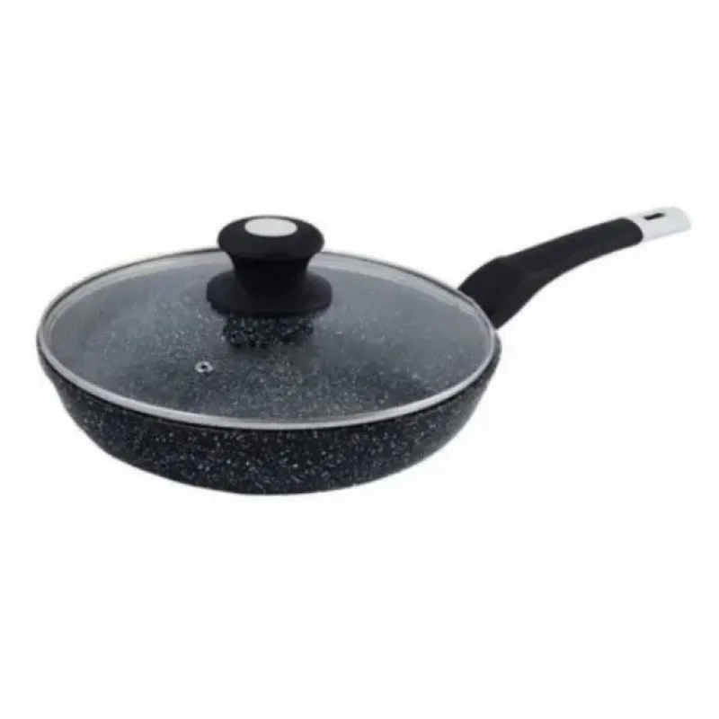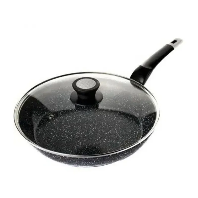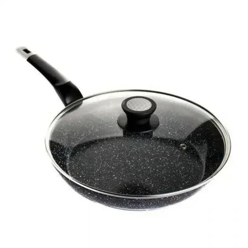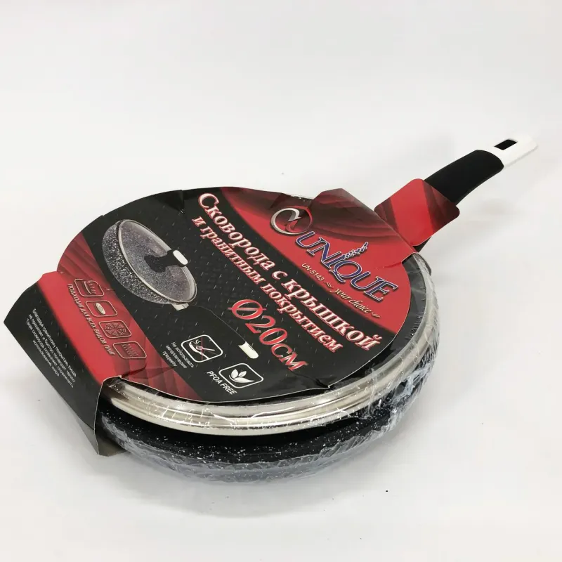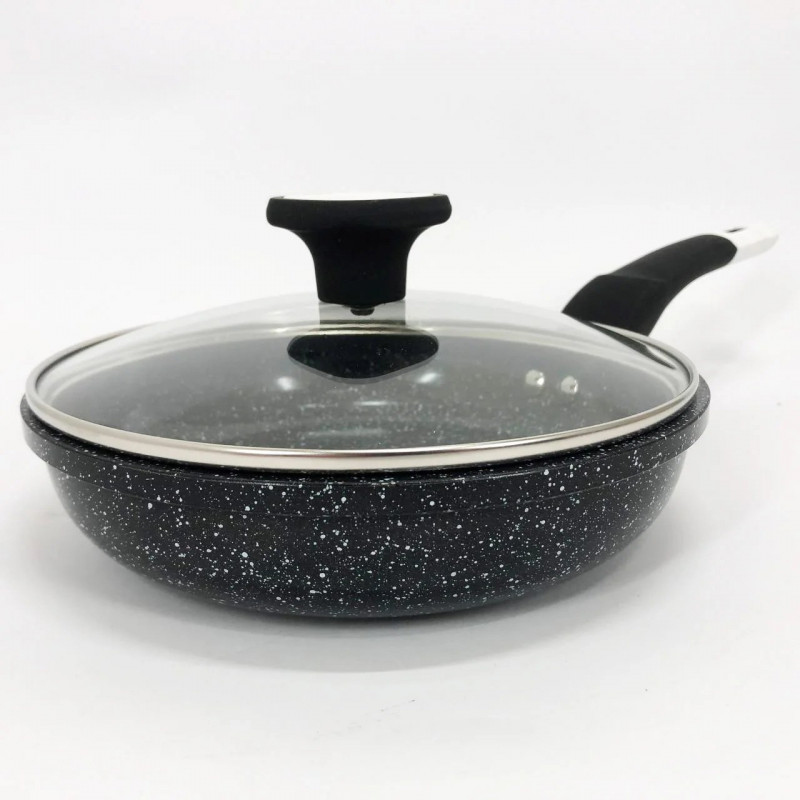 Сковорода с стеклянной крышкой UNIQUE Granite coating с антипригарными свойствами, она износостойка и долговечна. Новая система пористого антипригарного покрытия позволяет прожаривать продукты до хрустящей корочки. Стильная и удобная а так же долговечная сковорода UNIQUE с гранитным покрытием найдет свое место на любой кухне. Перед первым использованием вымойте посуду моющим средством, сполосните, просушите. Запрещается использовать металлические губки, а также средства содержащие абразивные добавки и хлор. Для мытья посуды можно использовать посудомоечную машину, так и ручную мойку. Резкий перепад температур может привести к порче покрытия, поэтому не ставьте на горячую конфорку посуду из холодильника. Готовить пищу следует при небольшом или среднем нагреве. Не оставляйте на горячей конфорке посуду на длительное время.