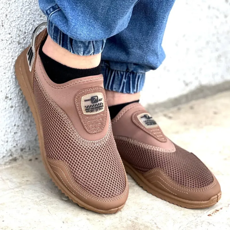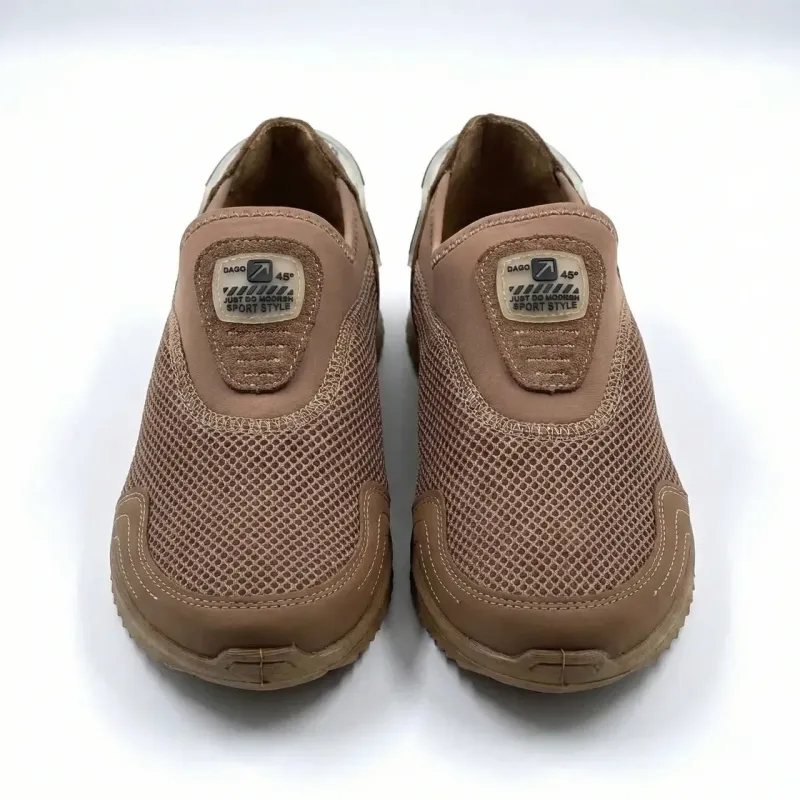 Ці бежеві чоловічі сліпони від фабрики DAGO Style — ідеальний варіант для тих, хто втомився від чорного кольору влітку. Колір "капучино" виглядає дорого, стильно і є дуже практичним (на ньому непомітний пил). Переваги цієї моделі: Якість від DAGO: Це не просто "ноунейм", а якісне фабричне взуття. На п'яті розташований стильний фіксатор з написом "DAGO SPORT", а на язичку — фірмовий логотип. Максимальна свіжість: Верх виготовлений з великої сітки, яка продувається наскрізь. Вашим ногам буде комфортно навіть у найбільшу спеку. Захист: Носок та п'ята посилені вставками з якісної еко-шкіри в тон сітці. Це захищає пальці від ударів, а тканину — від протирання. Комфорт: М'яка устілка з логотипом бренду та гнучка підошва забезпечують зручність при кожному кроці. Відсутність шнурків дозволяє взуватися миттєво. Характеристики: Виробник: DAGO Style (Україна). Сезон: Літо. Матеріал верху: Текстильна сітка + Еко-шкіра. Колір: Бежевий (Beige/Cappuccino). Розміри: 41, 42, 43, 44, 45.