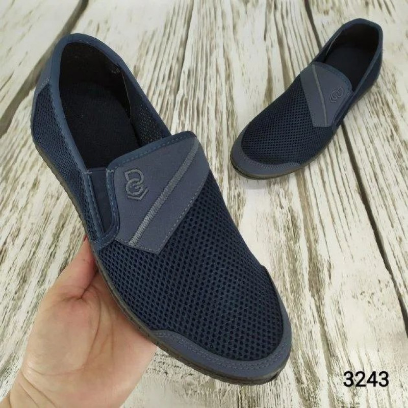 Сліпони чоловічі літні сітка (BGS) | Сині з коричневою підошвою, Мокасини, Розміри 41-45