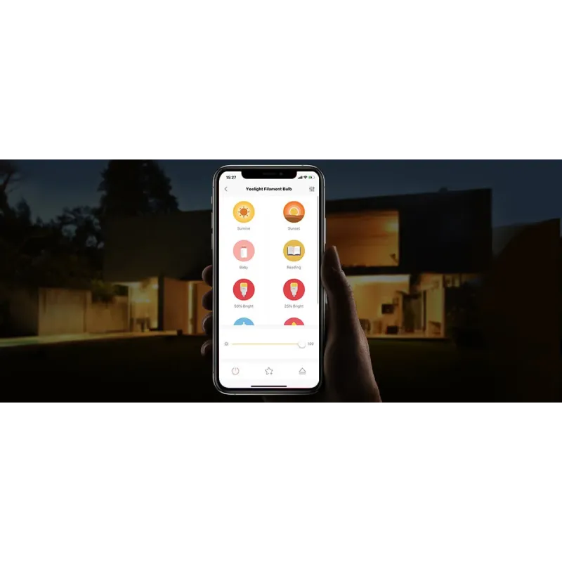 Вкрутіть лампу в стандартний патрон E27, завантажте безкоштовний додаток Yeelight, підключіть лампу до домашньої Wi-Fi мережі. Налаштуйте бажану яскравість, створіть сценарії освітлення або інтегруйте з розумним домом через Google Home чи Amazon Alexa.