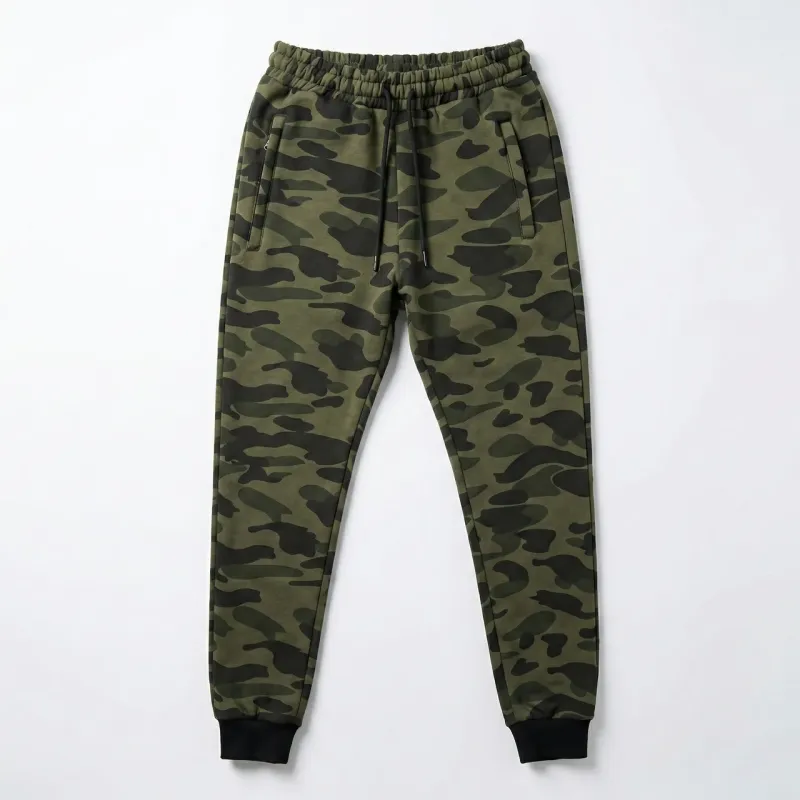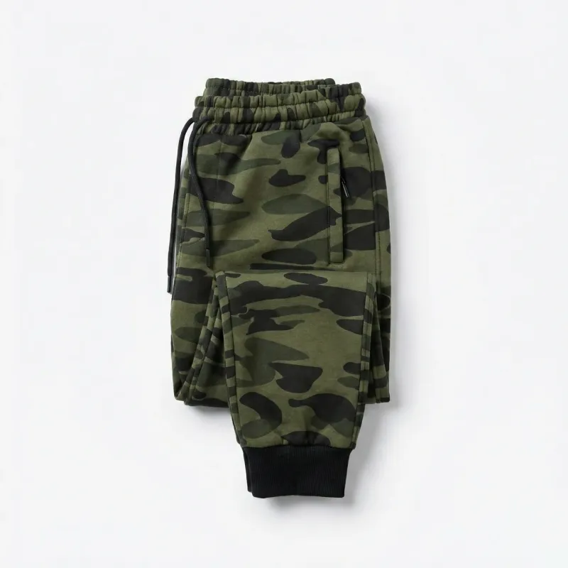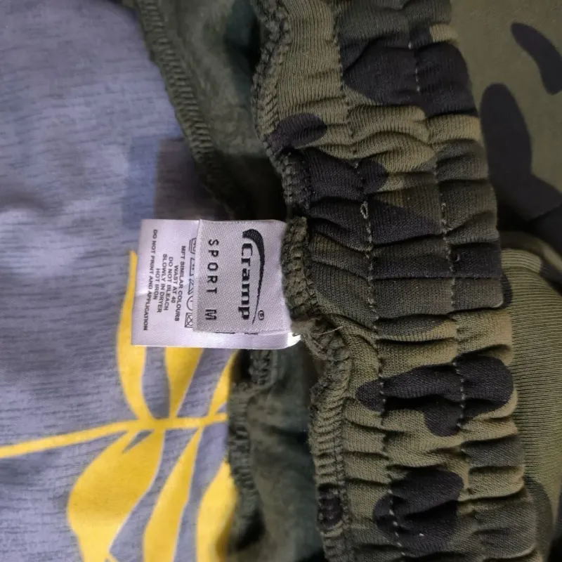 Зручні та теплі чоловічі спортивні штани у популярному забарвленні "камуфляж" (мілітарі). Ця модель ідеально підходить для осінньо-зимового сезону завдяки щільному утеплювачу (фліс/начіс) всередині. Вони стануть незамінними для повсякденного носіння, активного відпочинку на природі, прогулянок або поїздок на риболовлю. Штани пошиті з високоякісної турецької тканини з високим вмістом бавовни (73%), що дозволяє тілу дихати, а додавання поліестеру та лайкри забезпечує міцність виробу та збереження форми після прання. Еластичний пояс на шнурівці гарантує зручну посадку на будь-яку фігуру, а манжети внизу штанин захищають від задування вітру та зберігають тепло. Особлива перевага моделі — кишені на блискавці, завдяки яким телефон, ключі чи гаманець будуть у повній безпеці під час руху. Стильний камуфляжний принт не тільки модно виглядає, але й дуже практичний у використанні, оскільки на ньому менш помітні забруднення. Характеристики: Тип виробу: Спортивні штани / Джогери Матеріал: Трикотаж на флісі (73% бавовна, 22% поліестер, 5% лайкра) Сезон: Зима / Холодна осінь Колір: Камуфляж (Хакі/Зелений) Особливості: Кишені на блискавці, пояс на шнурку, манжети Країна виробник: Туреччина (Cramp)