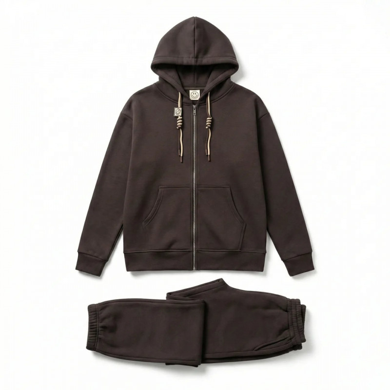 Стильний та затишний жіночий спортивний костюм у трендовому кольорі "Гіркий шоколад". Це ідеальний вибір для осінньо-зимового сезону, який зігріє вас у прохолодну погоду та подарує відчуття максимального комфорту. Комплект складається з двох елементів: Худі: Зручна кофта з глибоким капюшоном, який захистить від вітру. Вільний крій не сковує рухів. Штани (Джогери): Мають високу посадку на еластичній резинці, що не тисне на талію. З боків розташовані глибокі практичні кишені. Низ штанин на манжетах для кращого збереження тепла. Костюм пошитий з якісного щільного трикотажу (швидше за все, на флісі), який приємний до тіла, не кошлатиться і добре тримає форму після прання. Глибокий коричневий колір виглядає дорого і практично не брудниться. Чудовий варіант для прогулянок, поїздок або домашнього відпочинку. Характеристики: Тип: Спортивний костюм (двійка) Комплектація: Худі + Штани Колір: Темно-коричневий (Шоколад) Матеріал: Щільний трикотаж (утеплений/на флісі) Сезон: Осінь / Зима Розміри в наявності: M, L, XL, XXL (44-52)