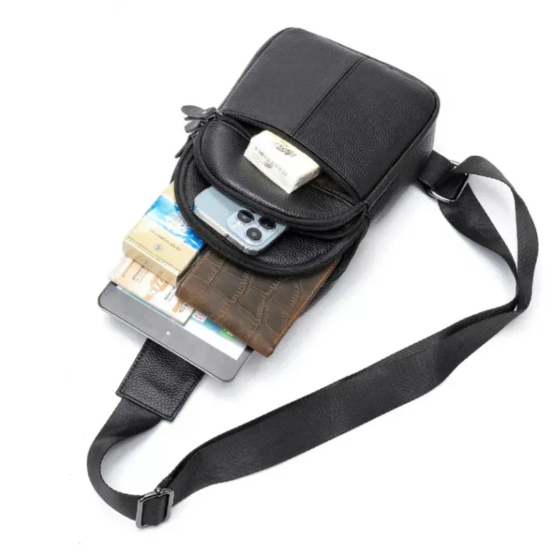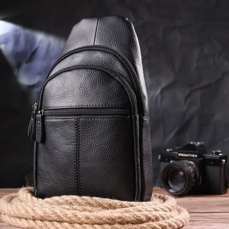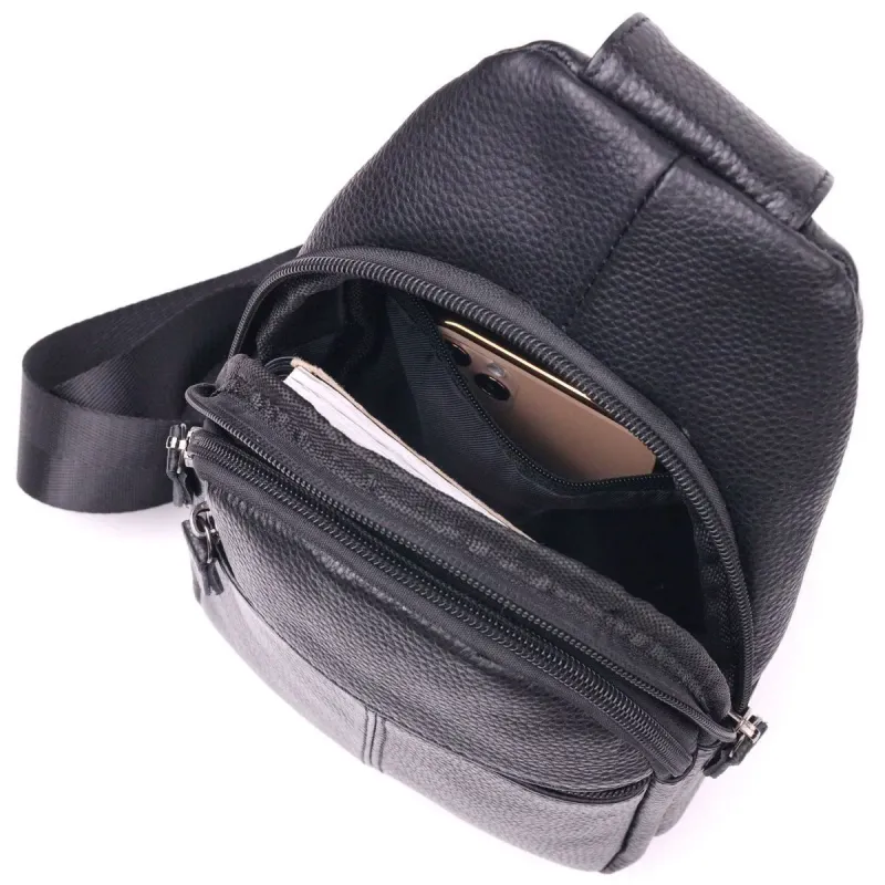 Мужская кожаная сумка-слинг из натуральной кожи флотар – вместительная, качественная, с надежной фурнитурой