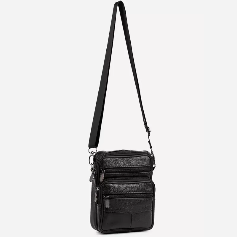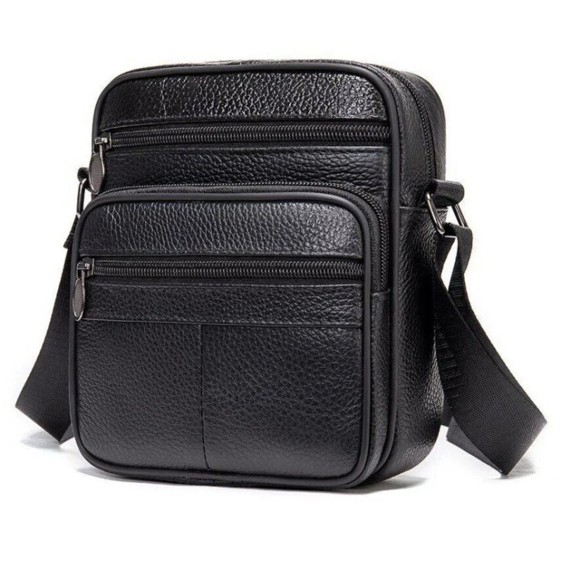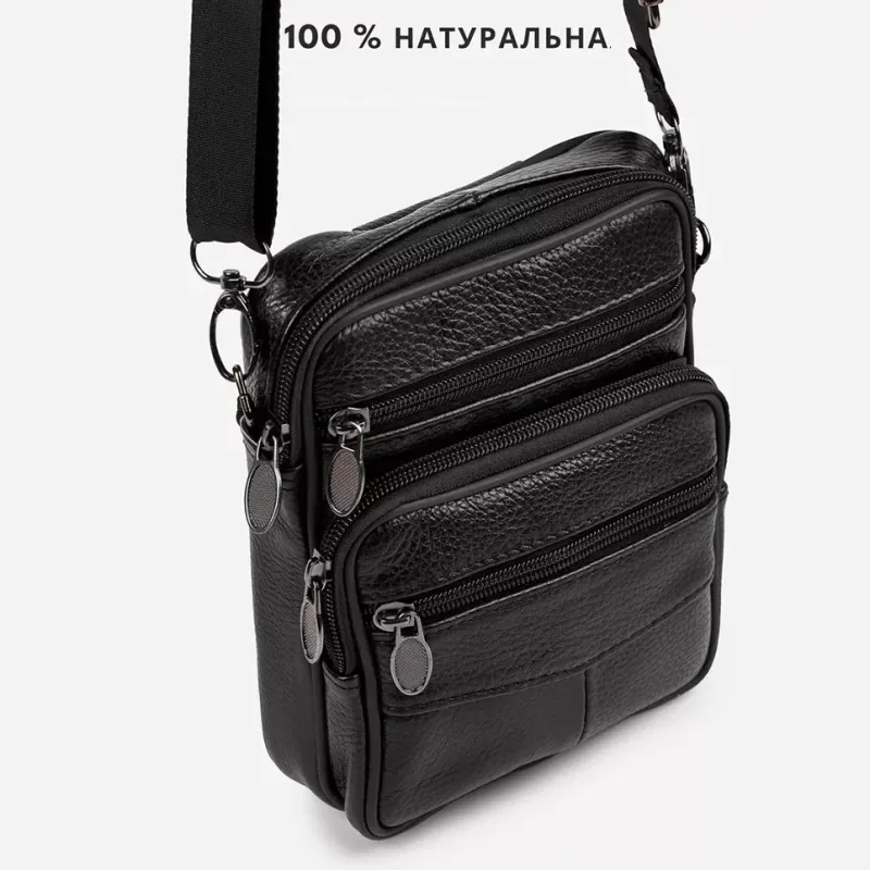 Мужская сумка из натуральной кожи флотарь – компактная и многофункциональная (черная)