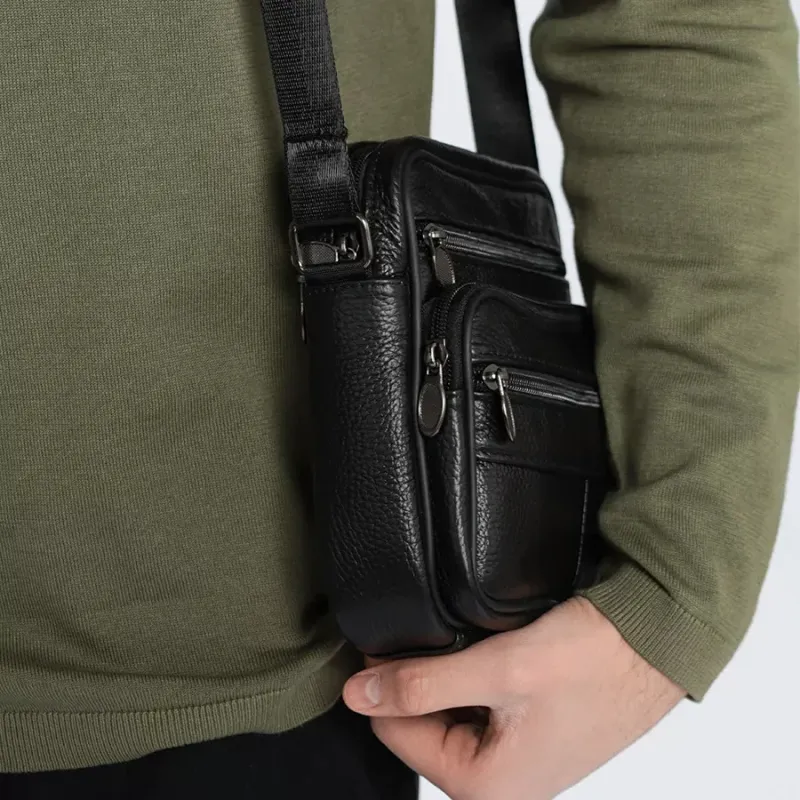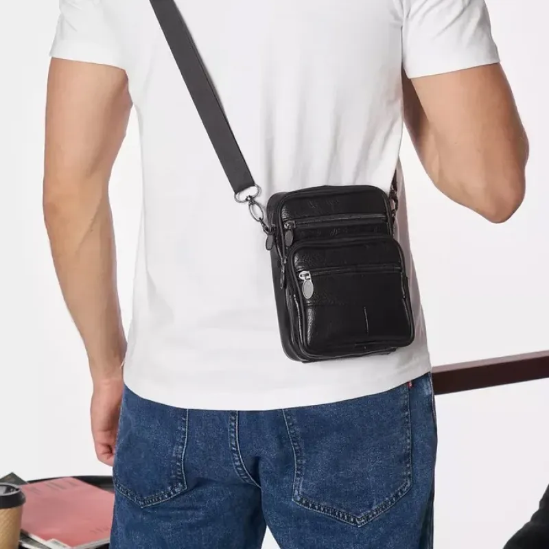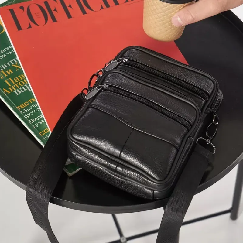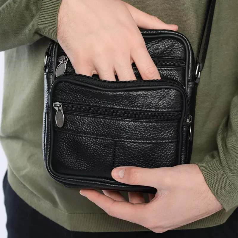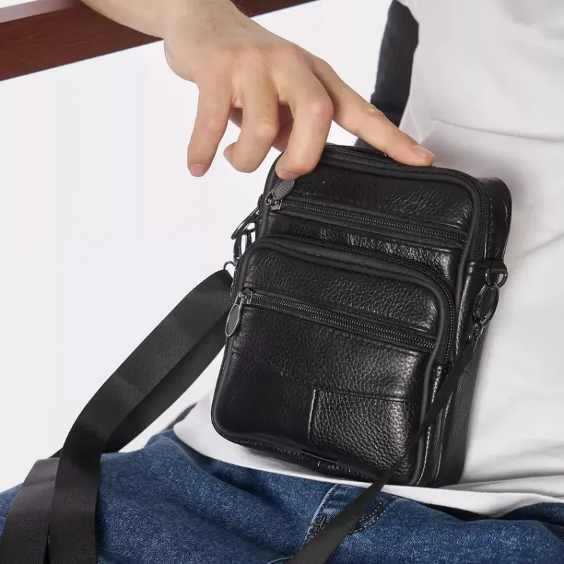 Стильная мужская сумка через плечо из натуральной кожи, компактный размер, много отделений