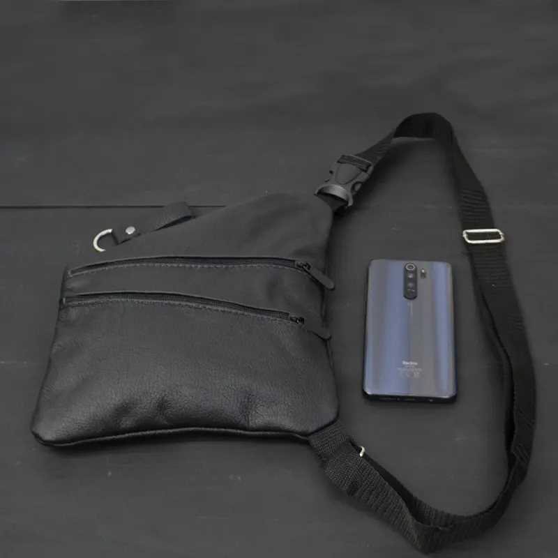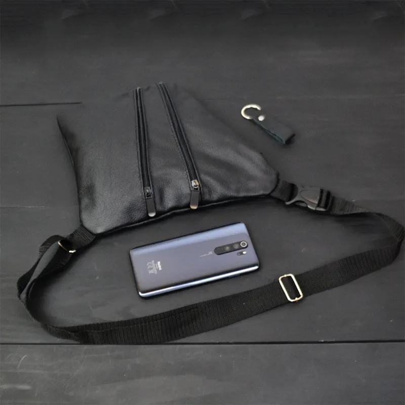 Сумка мужская на 3 карманах, из натуральной кожи, слинг нагрудный черный, мужская сумка кроссбоди