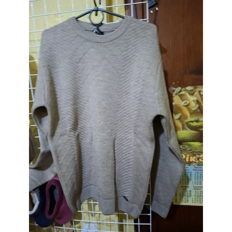 Стильний та затишний чоловічий светр (джемпер) у приємному бежевому кольорі — це базова річ, яка має бути в гардеробі кожного чоловіка. Модель вирізняється оригінальною фактурною в'язкою спереду у вигляді геометричного візерунка (зигзаг/ялинка), що додає образу елегантності, тоді як спинка виконана гладкою в'язкою. Светр має класичний круглий виріз горловини, а також еластичні манжети на рукавах та по низу виробу, що забезпечує ідеальну посадку по фігурі та захищає від проникнення холоду. М'яка пряжа приємна до тіла, не колеться і добре зберігає тепло. Цей джемпер універсальний: він чудово поєднується як з джинсами для повсякденного носіння, так і з класичними брюками для офісу чи святкових подій. Нейтральний відтінок легко вписується в будь-яку кольорову гаму вашого одягу. Характеристики: Матеріал: В'язка (вовна з акрилом / текстиль) Колір: Бежевий (Капучино/Пісочний) Тип горловини: Круглий виріз Особливості: Фактурний візерунок спереду Сезон: Осінь / Зима / Весна Розміри в наявності: 48, 50 Стать: Чоловічі