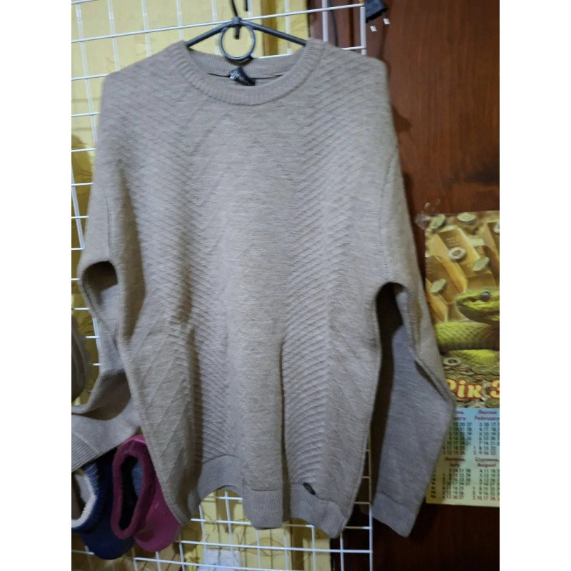 Светр чоловічий бежевий в'язаний з фактурним візерунком. Класичний джемпер 48-50