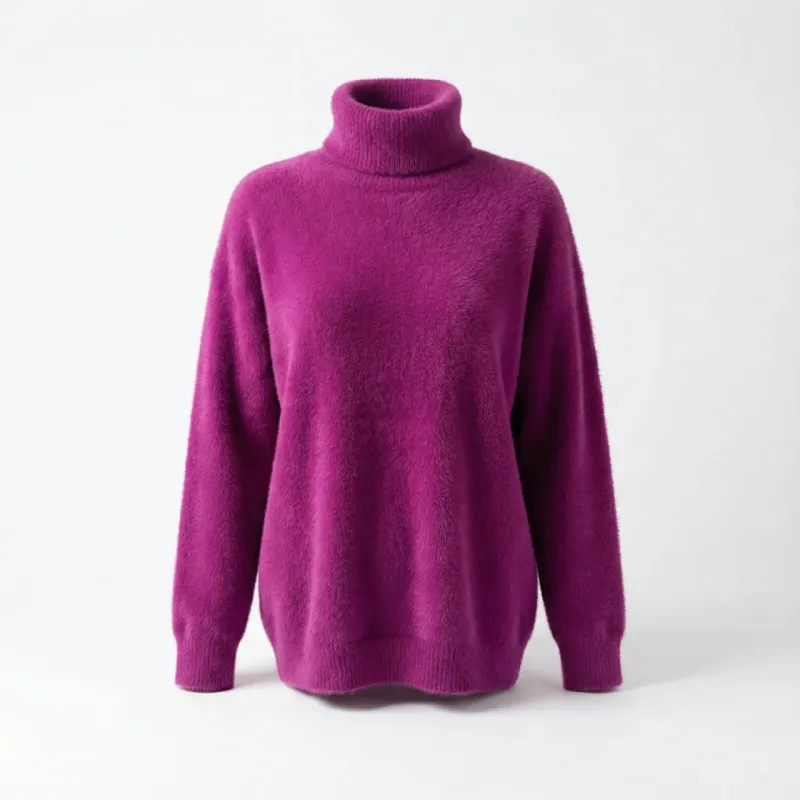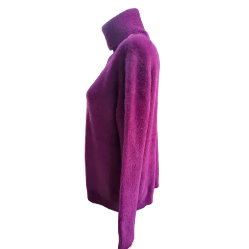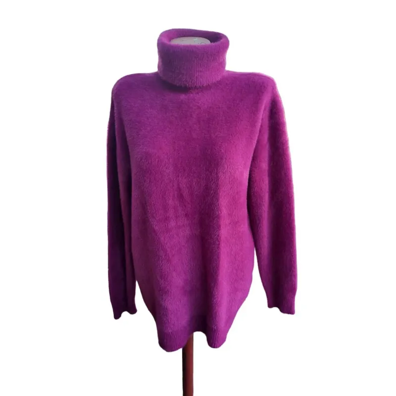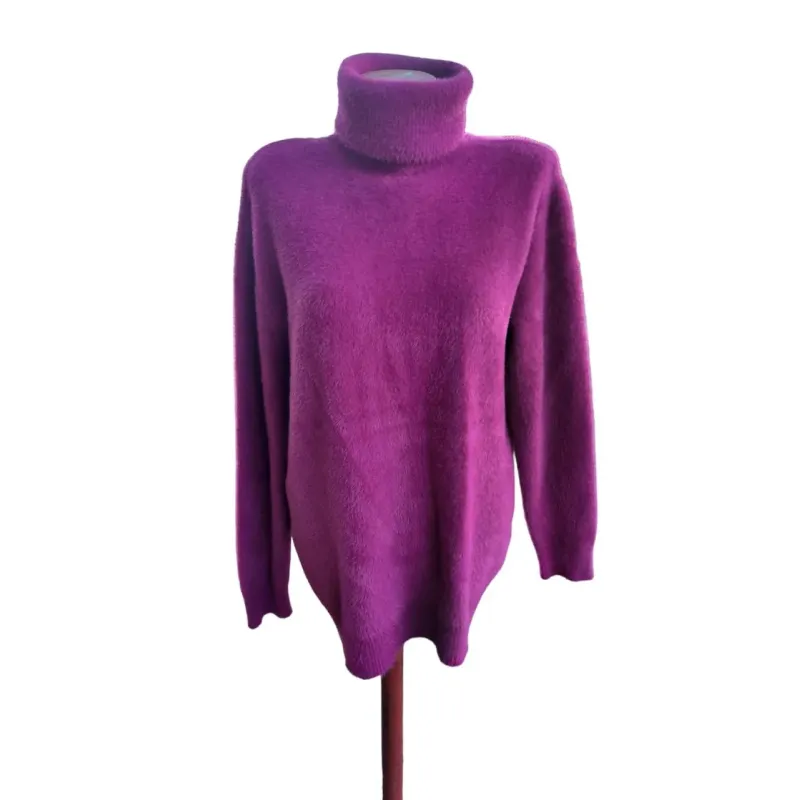 Ангора — це натуральне волокно, яке не дратує шкіру, чудово зберігає тепло та має благородний вигляд. Светр з горлом захищає від холоду, а широка розмірна сітка 48-56 та палітра кольорів дозволяють кожній жінці знайти свій ідеальний варіант.