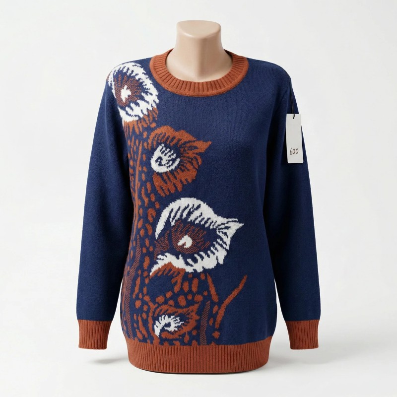 Цей светр виготовлений з якісної пряжі, що зберігає форму навіть після багаторазового прання. Яскравий принт синього кота робить образ унікальним, а широка розмірна сітка 44-52 забезпечує ідеальну посадку для різних типів фігури.