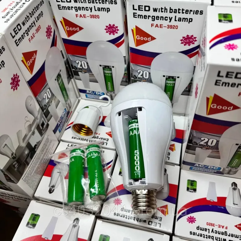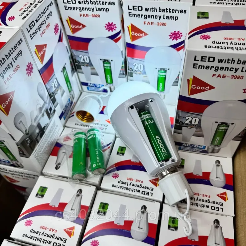 Світлодіодна аварійна LED лампочка 20Вт — ваше надійне рішення для безперебійного освітлення. З двома акумуляторами у комплекті вона забезпечує до 4 годин яскравого холодного світла навіть без електрики. Ідеальна для будинку, офісу чи дачі.