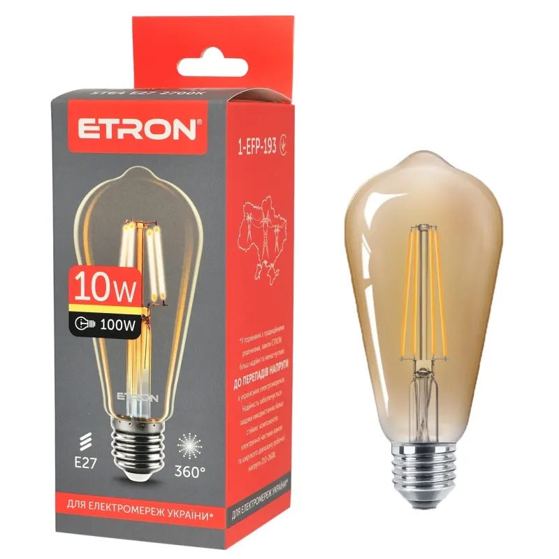 Теги: світлодіодна лампа, філаментна лампа, лампа E27, енергозберігаюча лампа, тепле світло 2700K, декоративна лампа, лампа ETRON