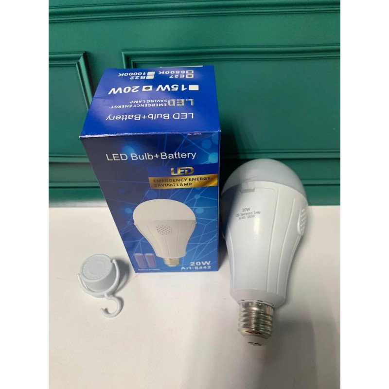 Світлодіодна лампа з акумулятором автономна аварійна 20W E27 лампочка з 2 акумуляторами 18650 і гачком