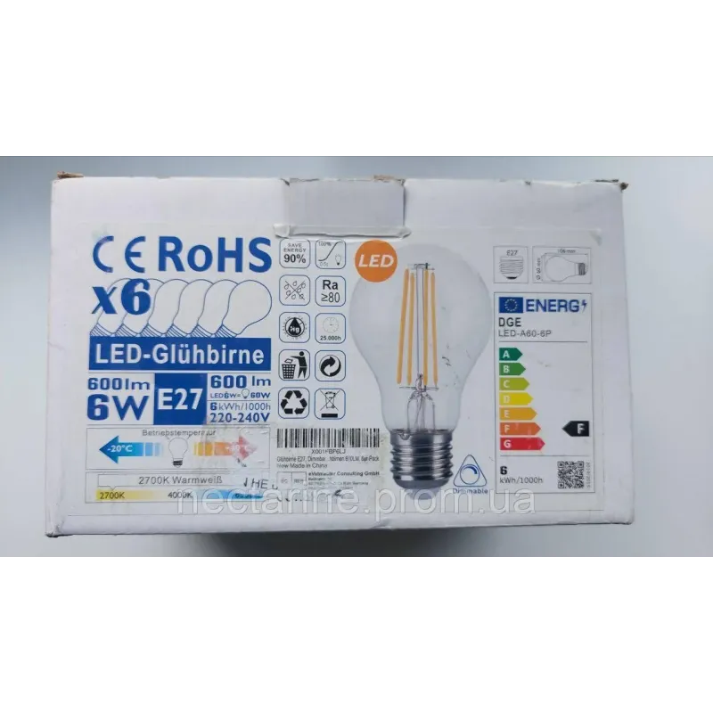 Завдяки енергоефективній LED-технології лампа споживає лише 6 Вт, забезпечуючи світловий потік як у 60-ватної лампи. Термін служби до 25 000 годин означає роки безперебійної роботи. Вбудована функція диммування дає змогу регулювати яскравість від 10% до 100%, створюючи комфортне освітлення для роботи, відпочинку чи романтичної вечері.