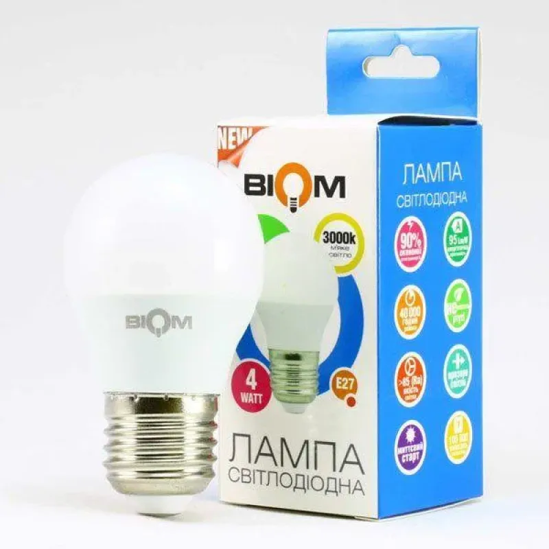 Теги: світлодіодна лампа biom, лампа e27 тепле світло, led лампа 4вт, лампа g45 biom bt-543, енергозберігаюча лампа, лампа 3000к купити