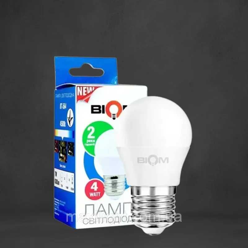Теги: світлодіодна лампа, LED лампа E27, лампа BIOM, енергозберігаюча лампа, лампа 4500К, лампа G45, освітлення для дому