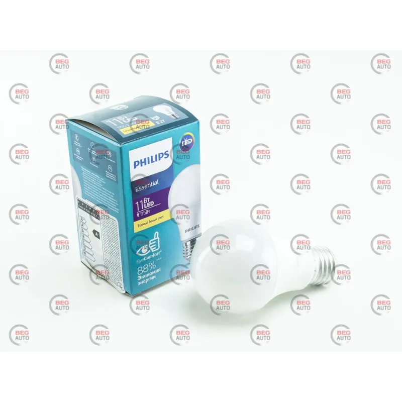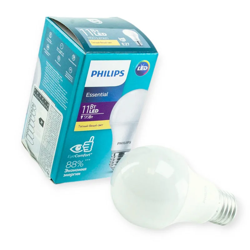 Теги: світлодіодна лампа Philips, LED лампа E27, лампа 11W теплий білий, енергозберігаюча лампа, Philips Essential, лампа 3000K, LED освітлення