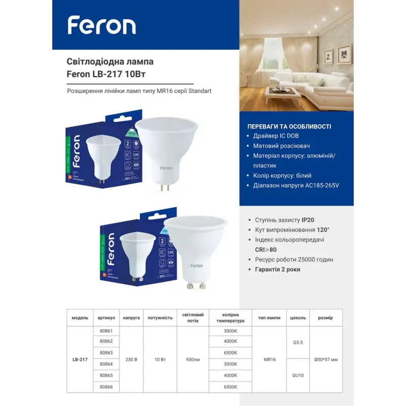 Замовте Feron GU10 LB-217 прямо зараз та отримайте якісне освітлення з економією на роки вперед!