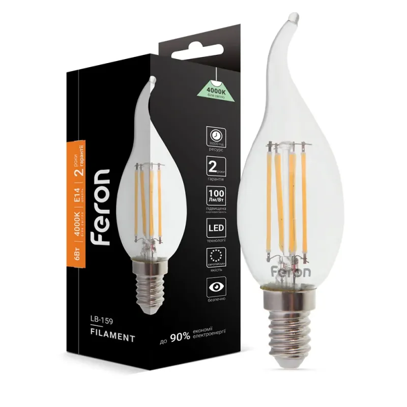 Теги: світлодіодна лампа E14, лампа філамент, лампа свічка на вітрі, Feron LB-59, ретро лампа, тепле світло 2200K, декоративна лампа