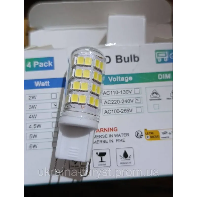 Світлодіодна лампа G9 6000K 3w двоконтактний цоколь 3 Вт,димер, 4ШТ Вогнетривка для духовки