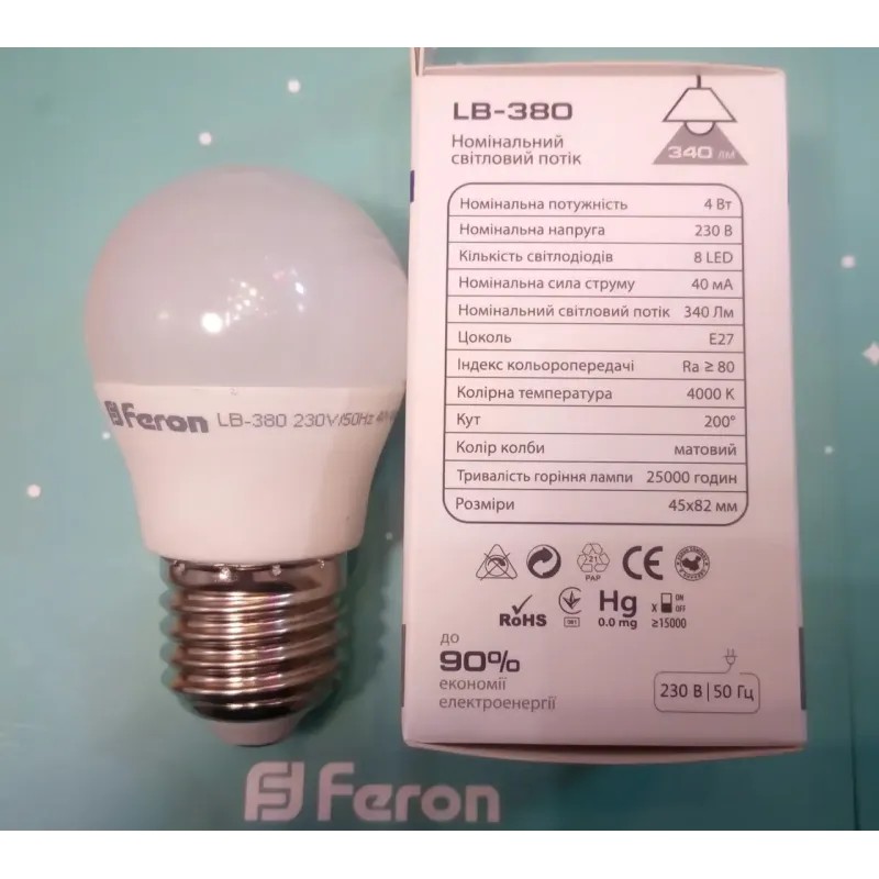 Теги: світлодіодна лампа E27, лампа Feron LB-380, LED лампа 4W, лампа кулька P45, нейтральне світло 4000K, енергозберігаюча лампа, декоративне освітлення