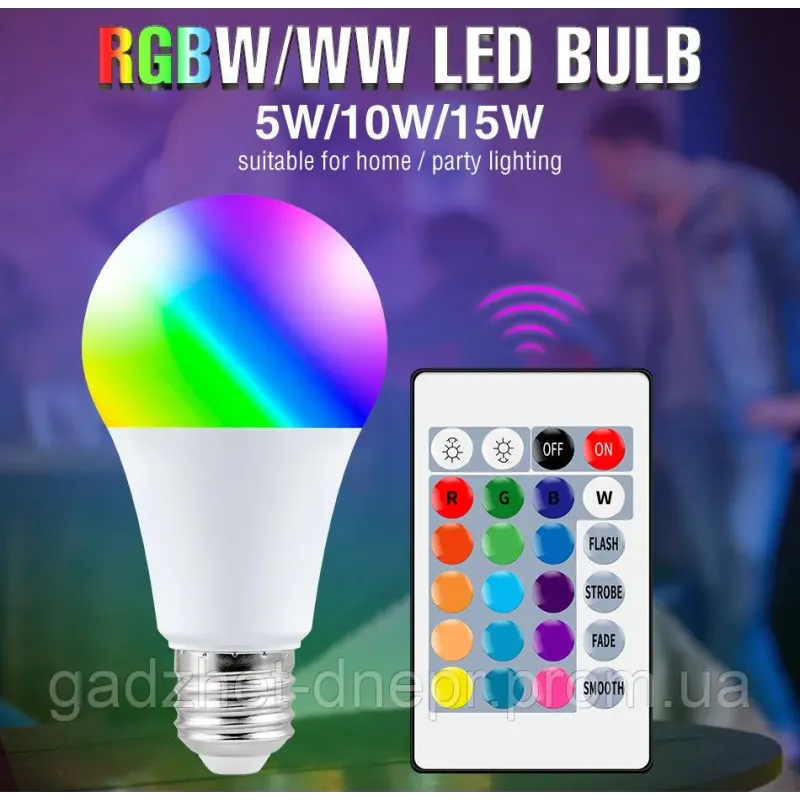 Теги: світлодіодна лампа rgb, лампа з пультом ду, led лампа e27, rgb освітлення, кольорова лампа, розумне освітлення, лампа 15 кольорів