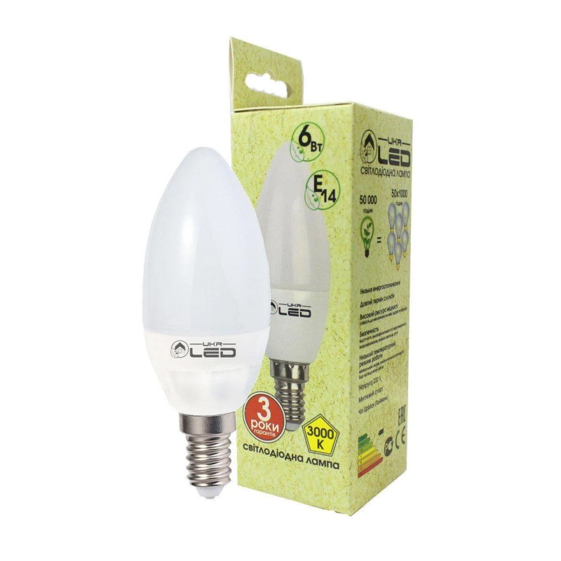 Теги: світлодіодна лампа е14, led лампа свічка, лампа 6w тепле світло, енергозберігаюча лампа, лампа ukrled, лампа е14 3000к, купити led лампу
