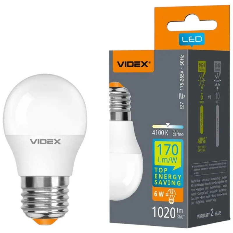 Економте до 90% електроенергії з LED-лампою Videx G45e