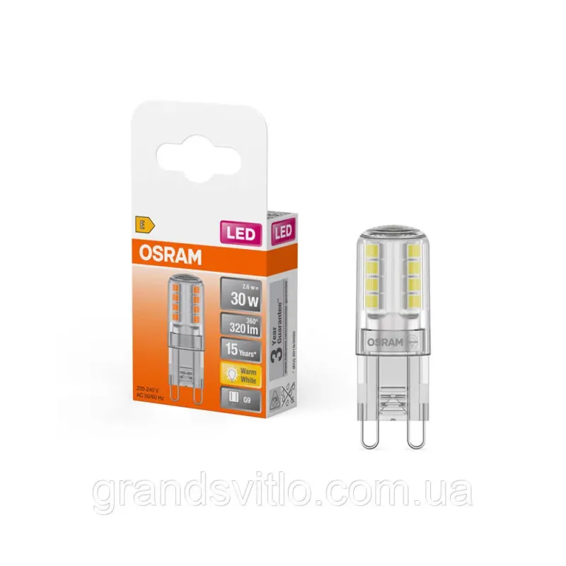 Світлодіодна лампочка Osram LED PIN G9 2.6W 2700K — це німецька якість освітлення з мінімальним споживанням електроенергії. Ідеальне рішення для декоративних світильників, бра та люстр з цоколем G9.