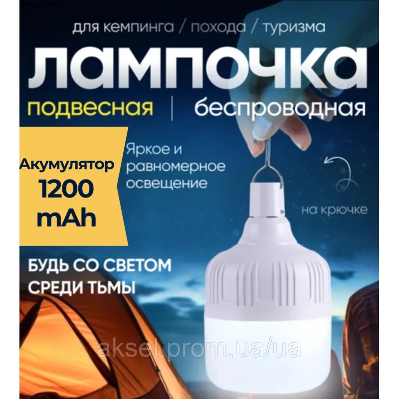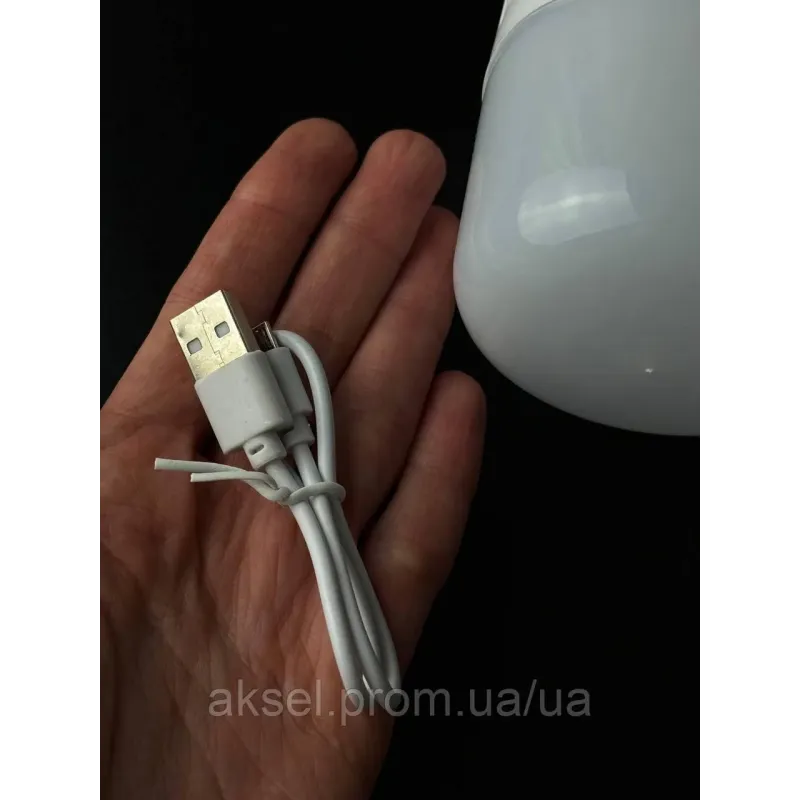 Зарядіть лампу через USB-порт (4-5 годин до повного заряду). Вкрутіть у стандартний патрон E27 або використовуйте з переносним патроном. Перемикайте режими світіння натисканням кнопки на корпусі. Ідеально для читання, роботи, аварійного освітлення або відпочинку на природі.