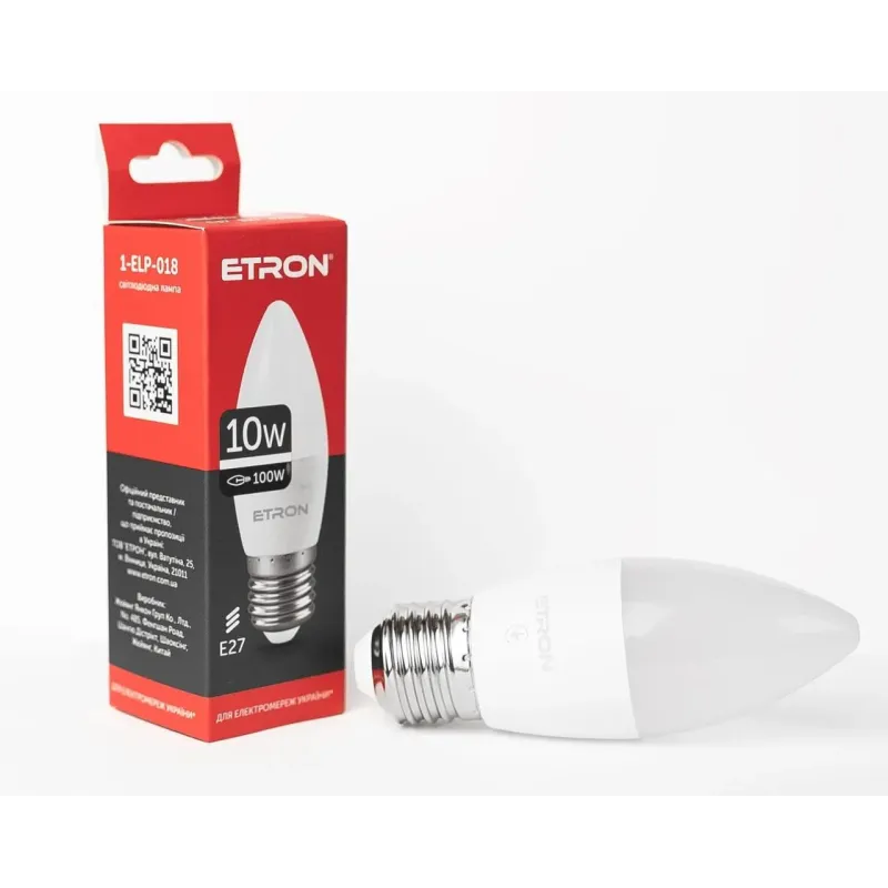 Теги: LED лампа ETRON, світлодіодна лампа E27, лампа 10W денне світло, енергозберігаюча лампа, LED освітлення C37, лампа 4200K, купити LED лампу