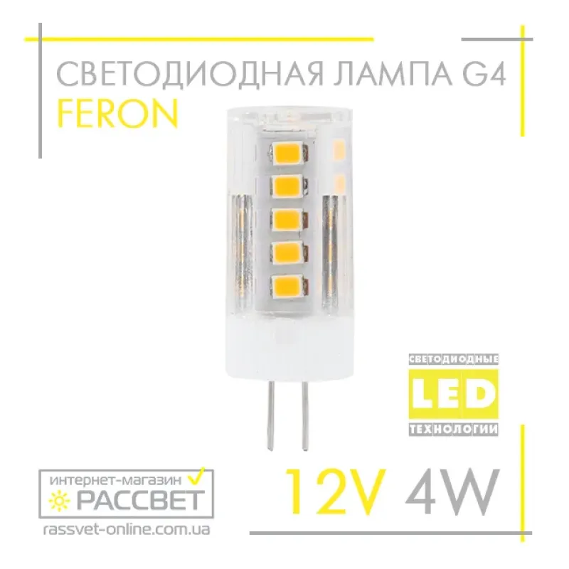 Теги: LED лампа G4, лампа 12В, Feron LB-423, капсульна лампа, світлодіодна лампа для люстри, лампа 4000K, енергозберігаюча лампа