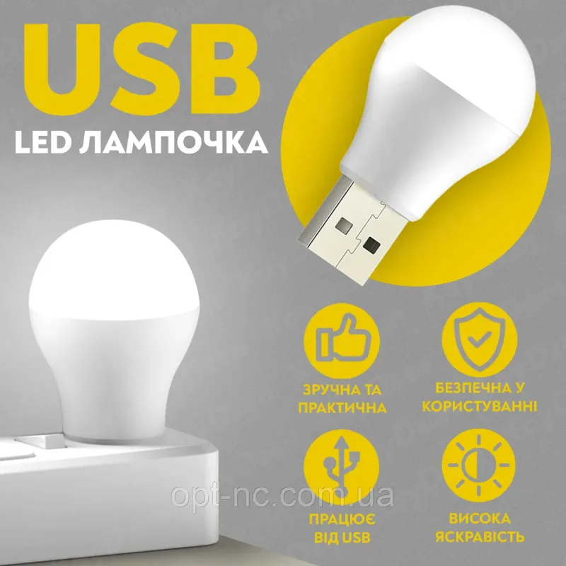 Теги: LED лампочка USB, USB освітлення, лампочка від повербанку, портативне освітлення, LED лампа 6000K, USB лампа 1W, компактна лампочка
