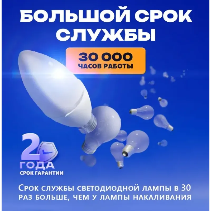 - **Економія до 90%** — знижує споживання електроенергії в 8-10 разів порівняно зі звичайними лампами