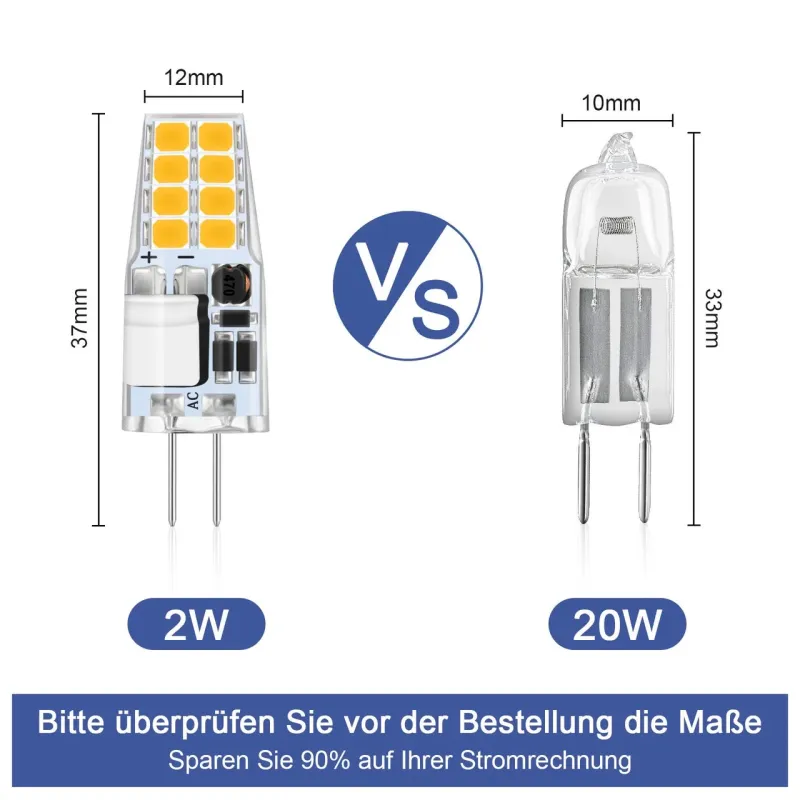 - **Економія 90% електроенергії** — всього 2 Вт замість 20 Вт галогенної лампи