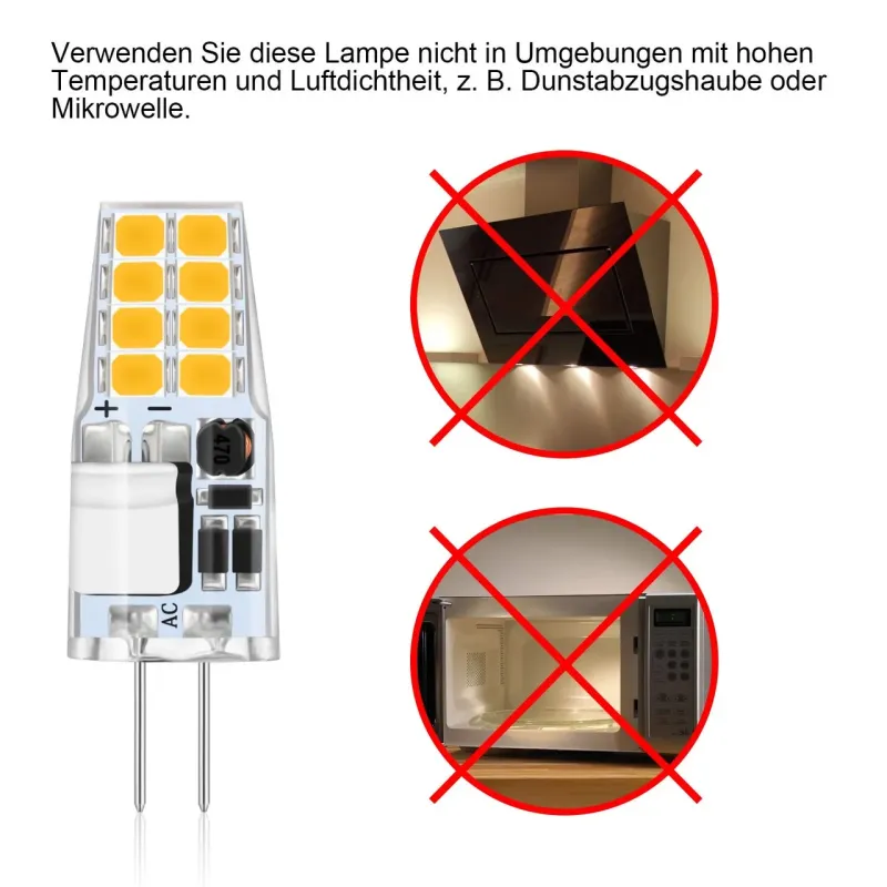 Просто встановіть лампу в стандартний цоколь G4 замість старої галогенної. Підходить для люстр, настінних світильників, підсвітки меблів та декоративного освітлення. Працює від мережі 230V без додаткових трансформаторів.