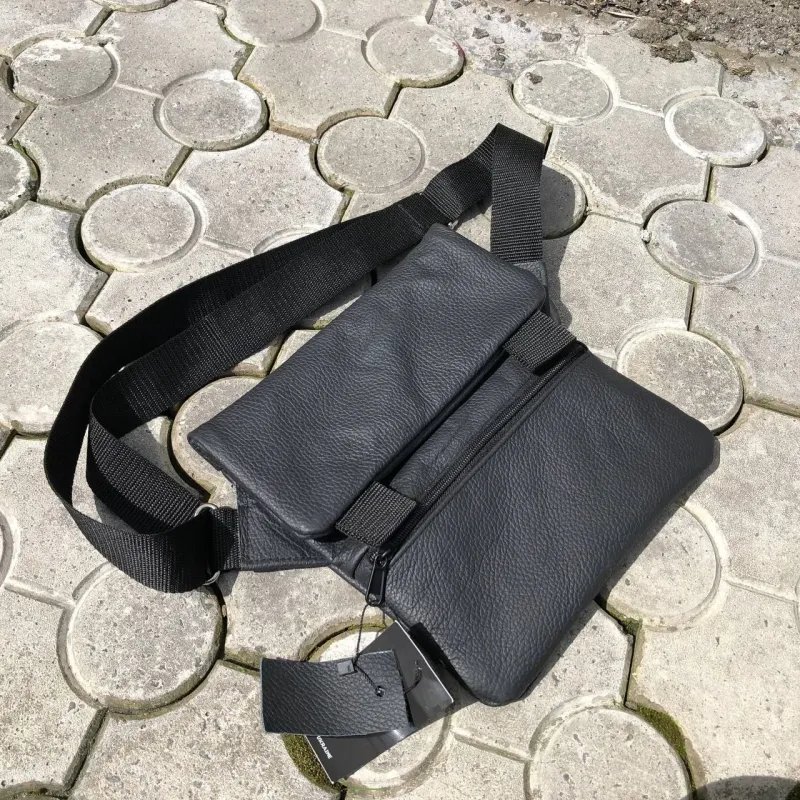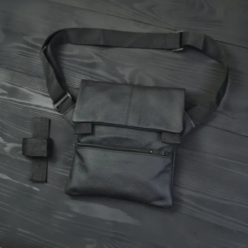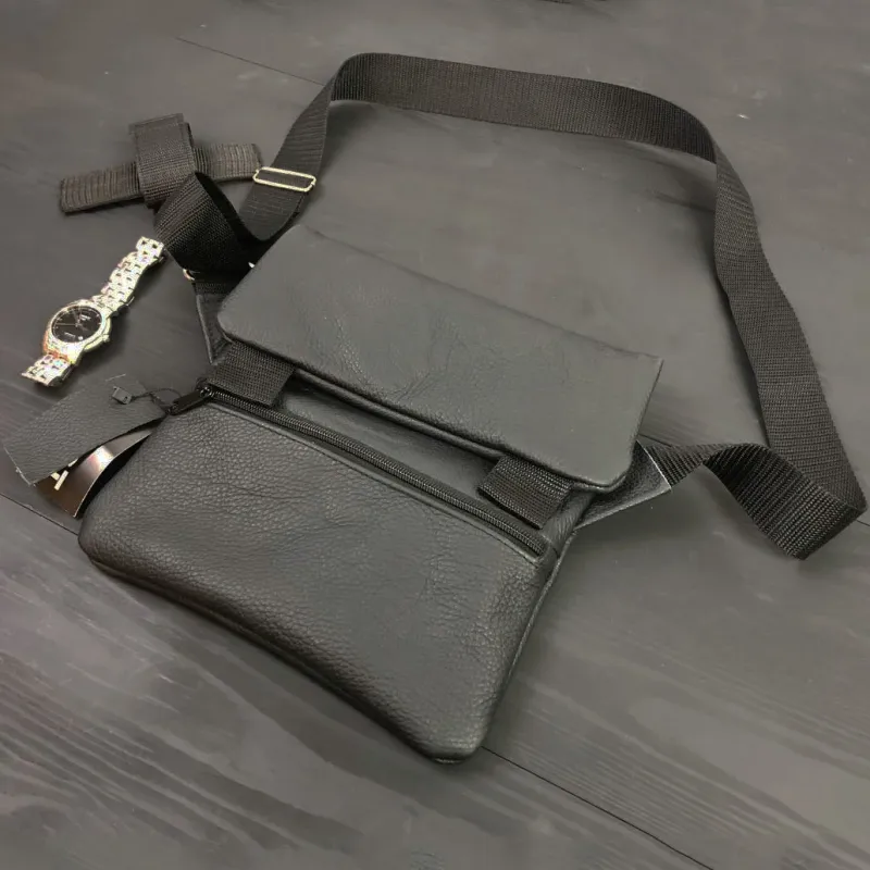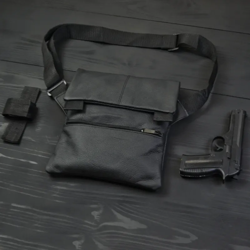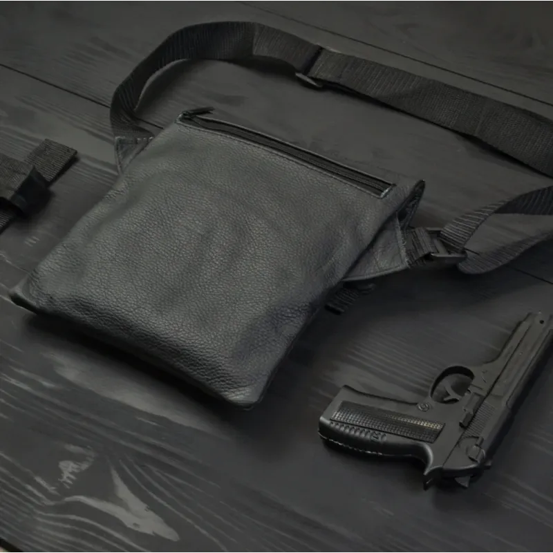 Тактическая кожаная сумка с кобурой, мужской мессенджер, барсетка - черный слинг, мужская сумка через плечо кожа