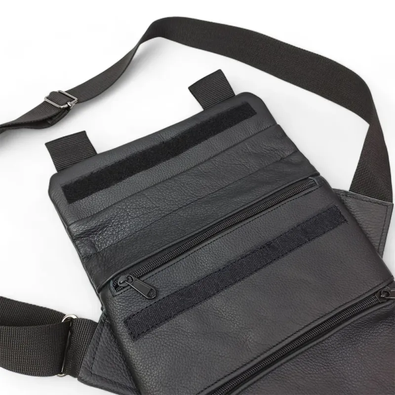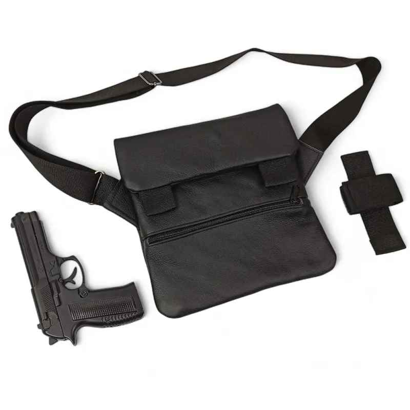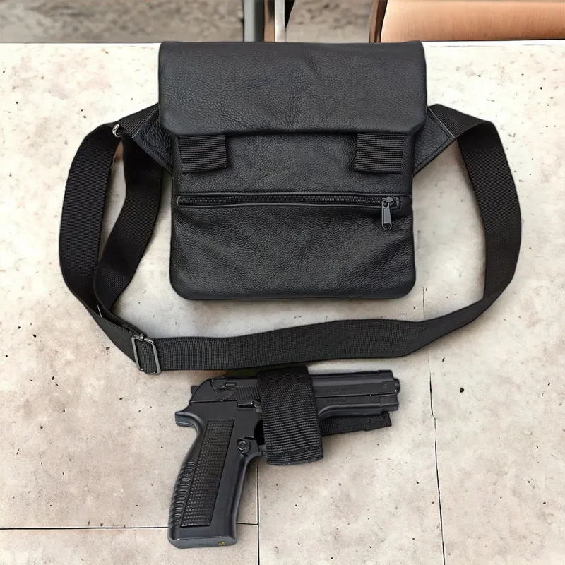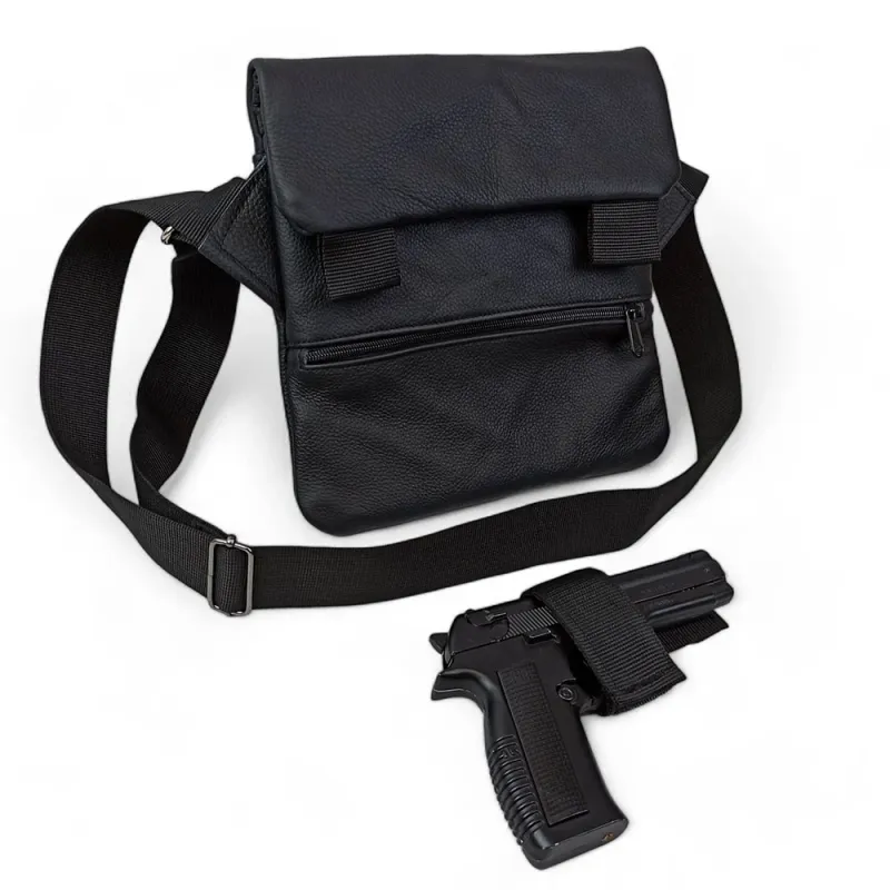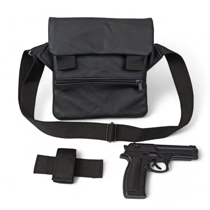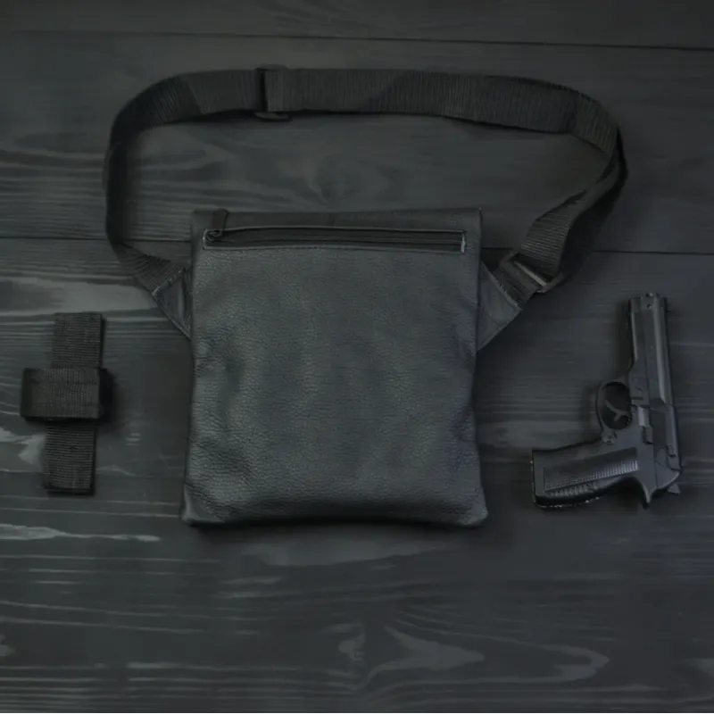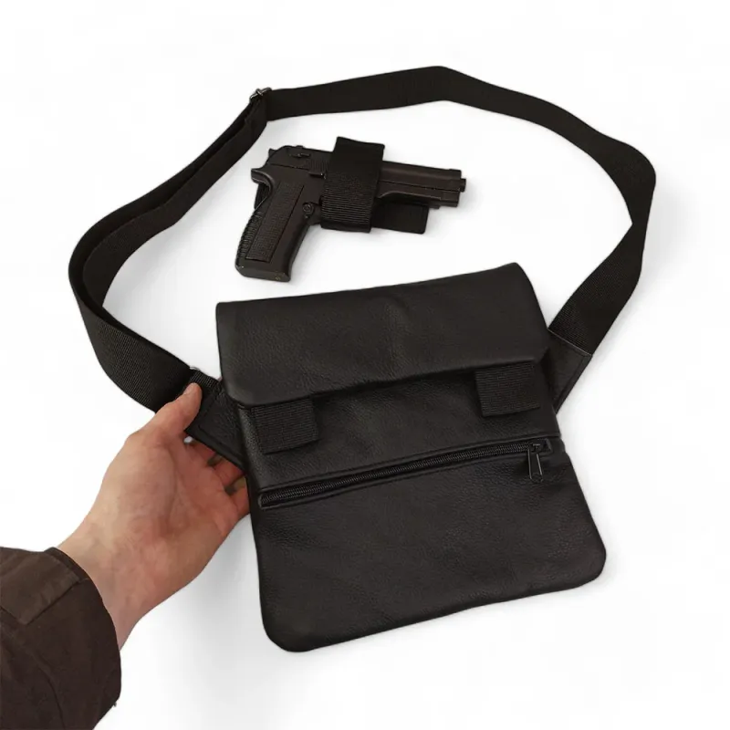 Сумка специально разработана для скрытого ношения оружия и сочетает премиальные материалы с продуманной тактической функциональностью. В комплекте — съемная кобура, надежно фиксируемая внутри основного отделения.